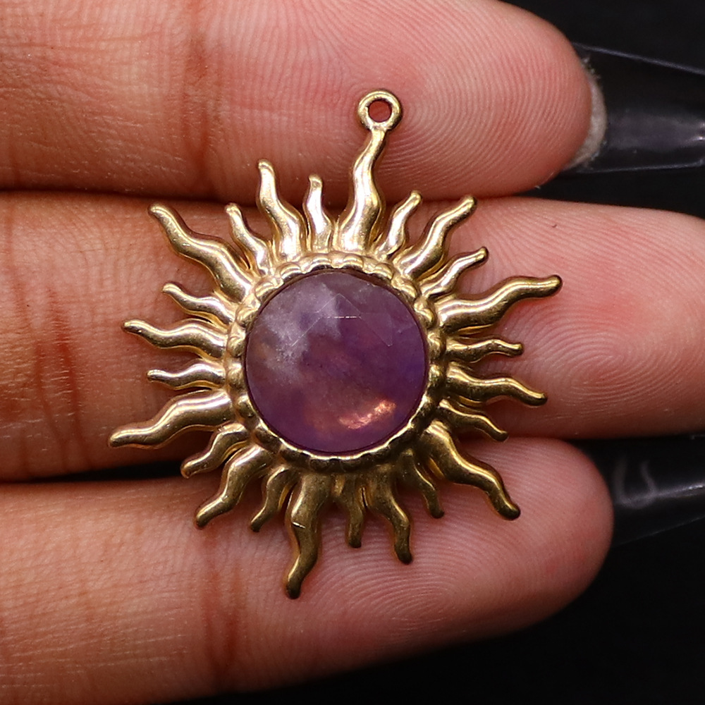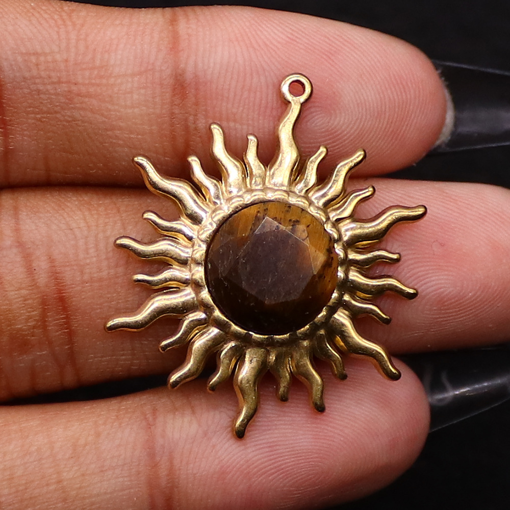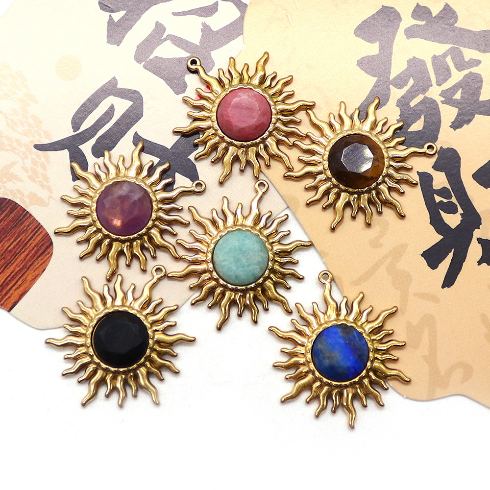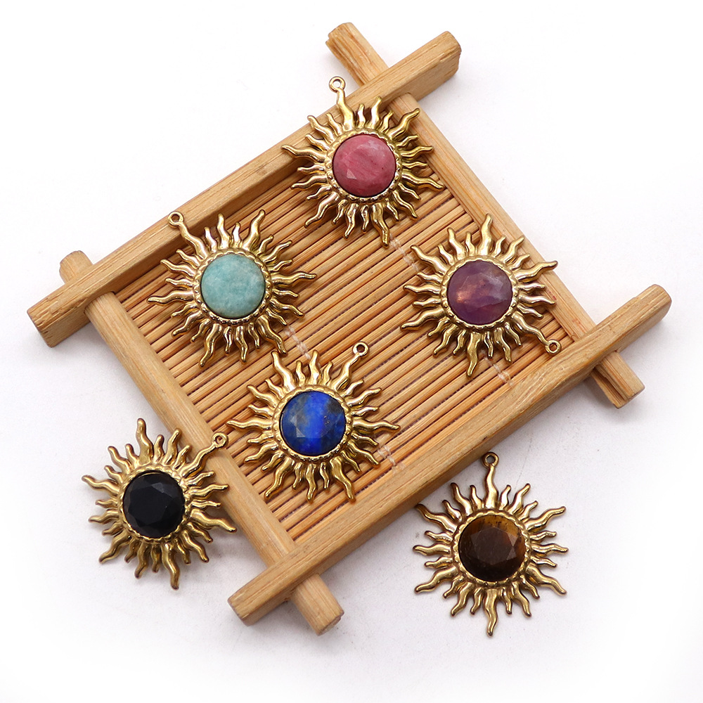 Gemstone Pendantifs en laiton, avec Pierre naturelle, soleil, Placage de couleur d'or, DIY, plus de couleurs à choisir, 25x30mm, Vendu par PC