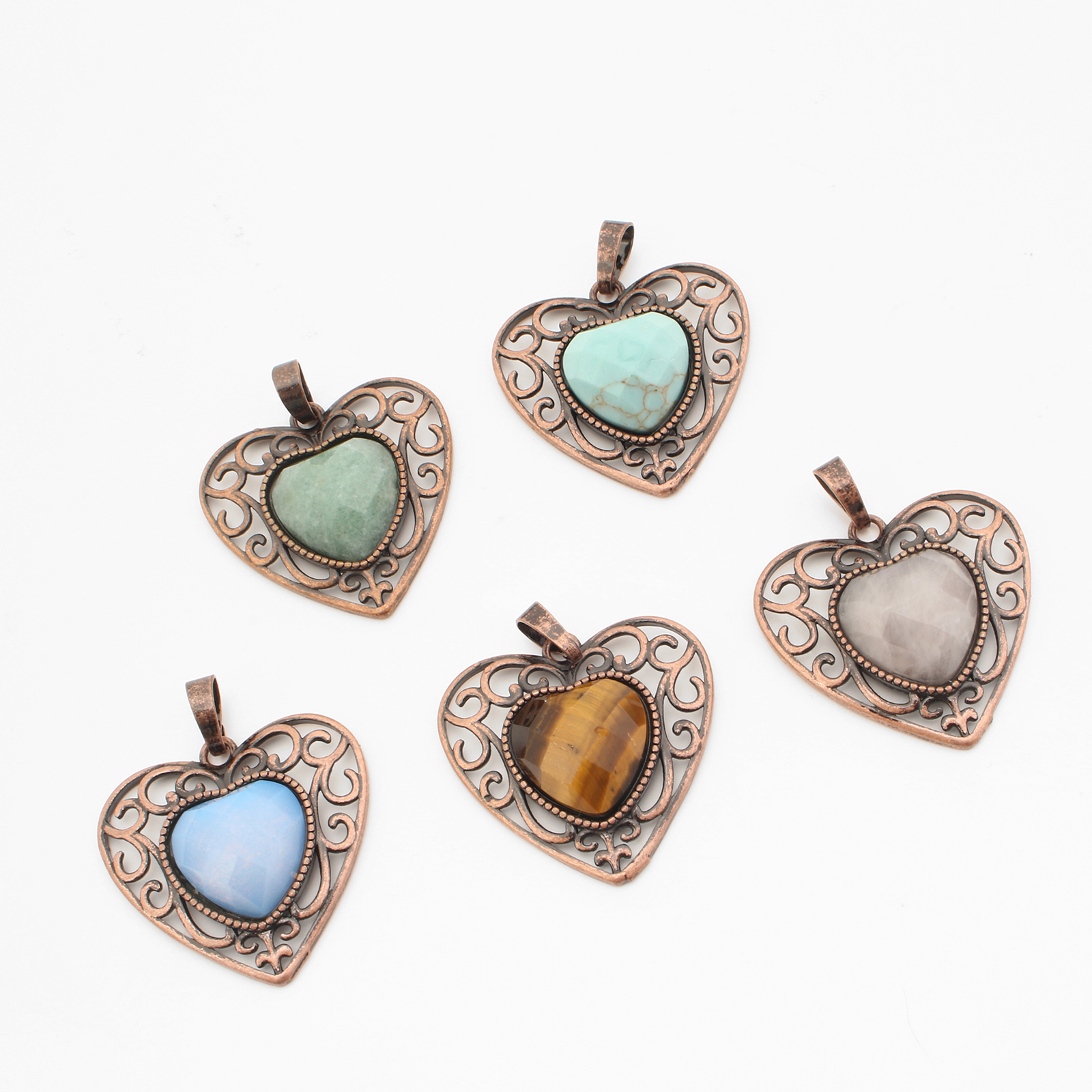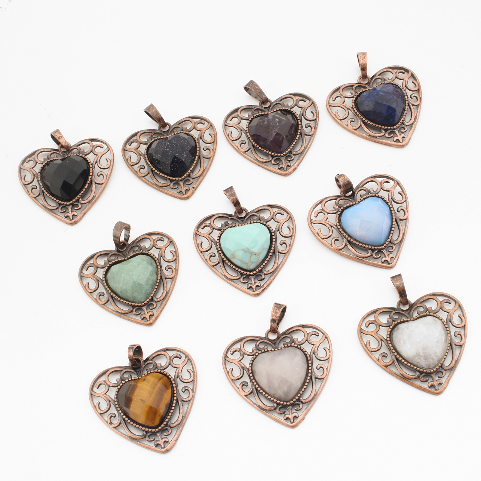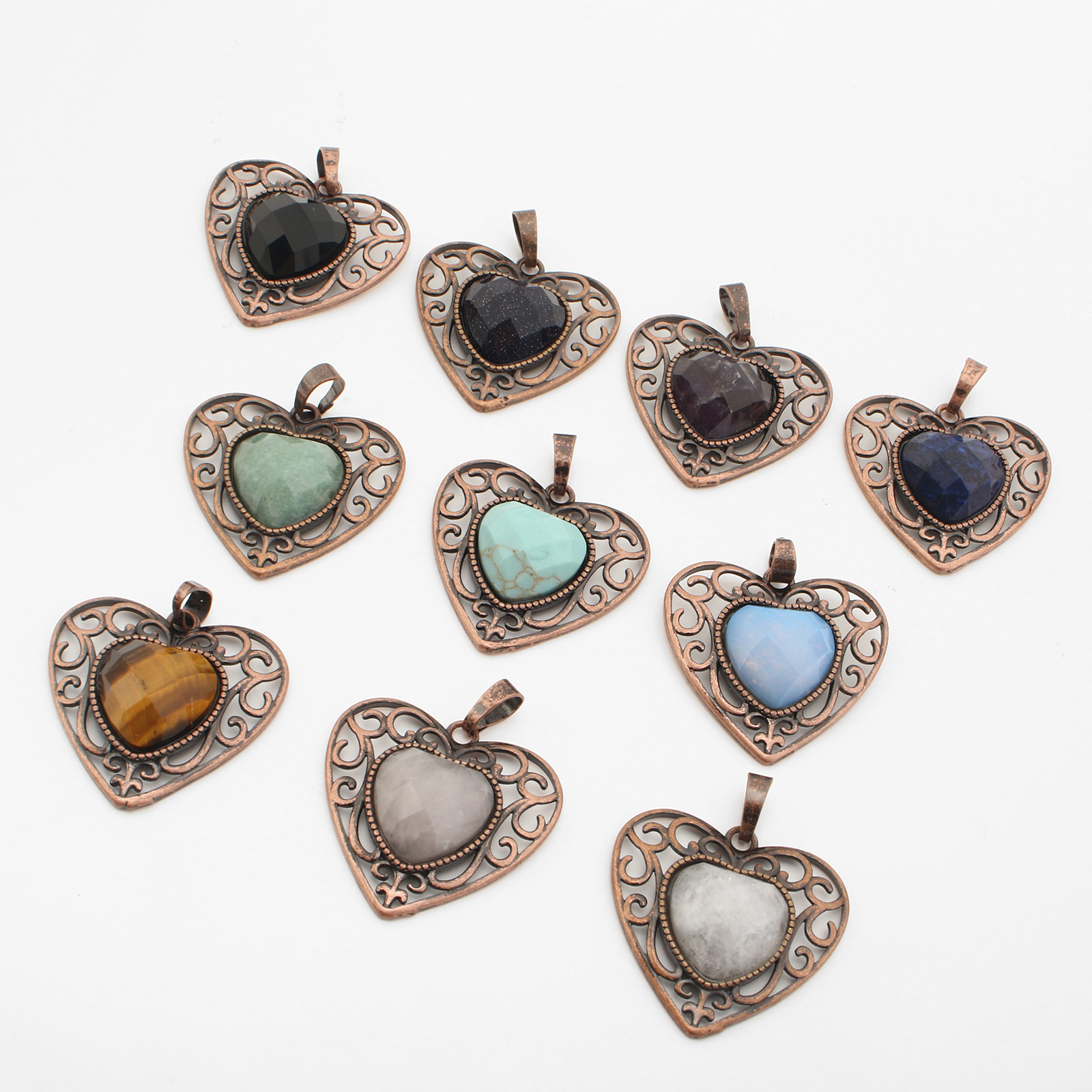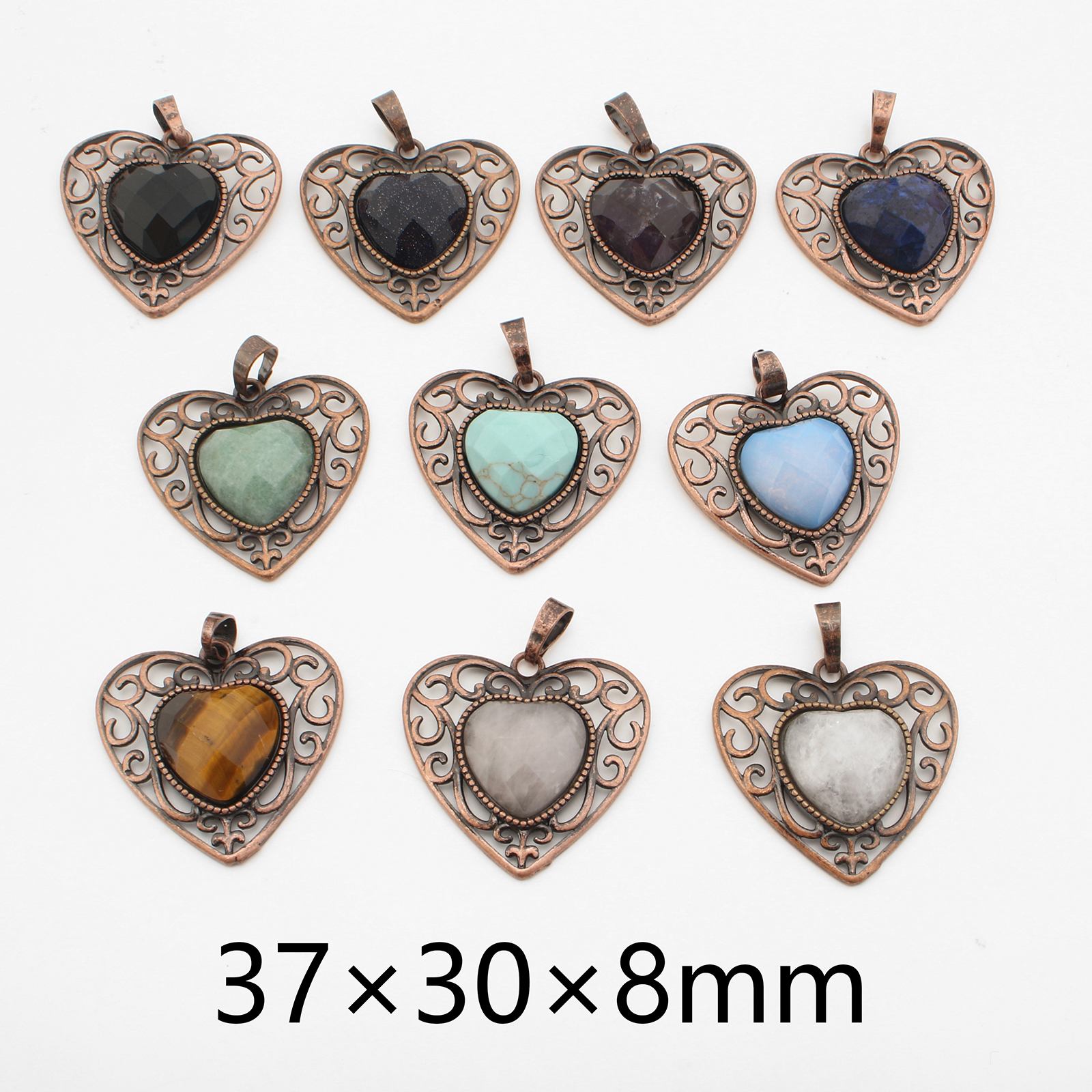 Gemstone Pendantifs en laiton, avec pierre gemme, coeur, Plaqué de couleur de cuivre antique, DIY & différents matériaux pour le choix & creux, 37x30x8mm, Vendu par PC