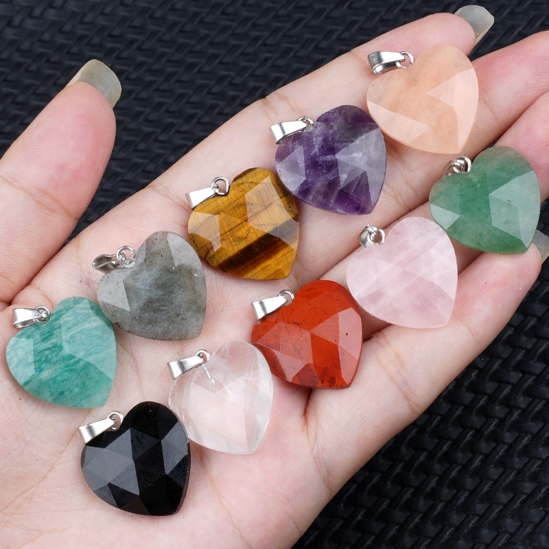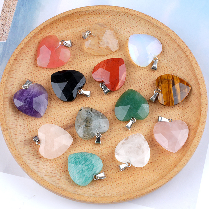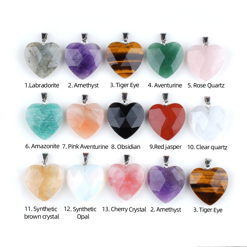 Gemstone Pendantifs en laiton, pierre gemme, avec laiton, coeur, Placage de couleur argentée, différents matériaux pour le choix, plus de couleurs à choisir, 20mm, Vendu par PC