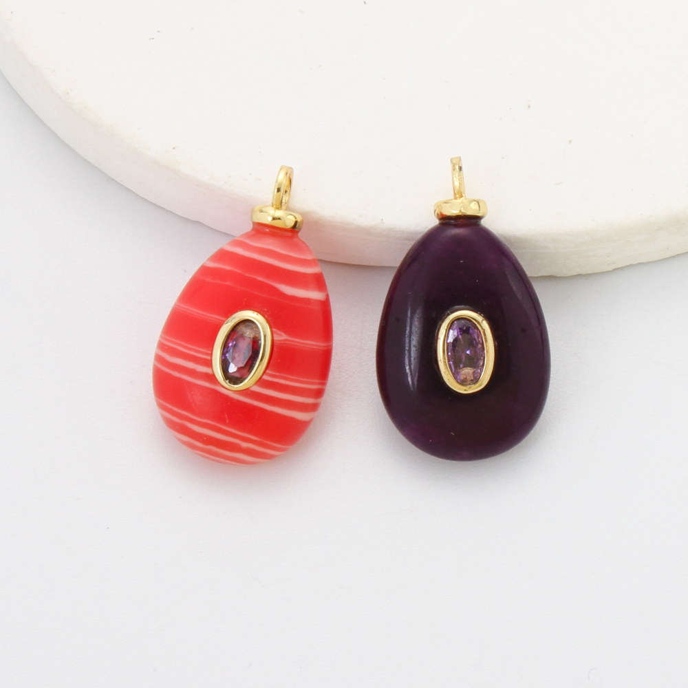 Gemstone Pendantifs en laiton, avec Pierre naturelle, Placage, DIY & pavé de micro zircon, plus de couleurs à choisir, protéger l'environnement, sans nickel, plomb et cadmium, 23x13.2x7.2mm, Vendu par PC