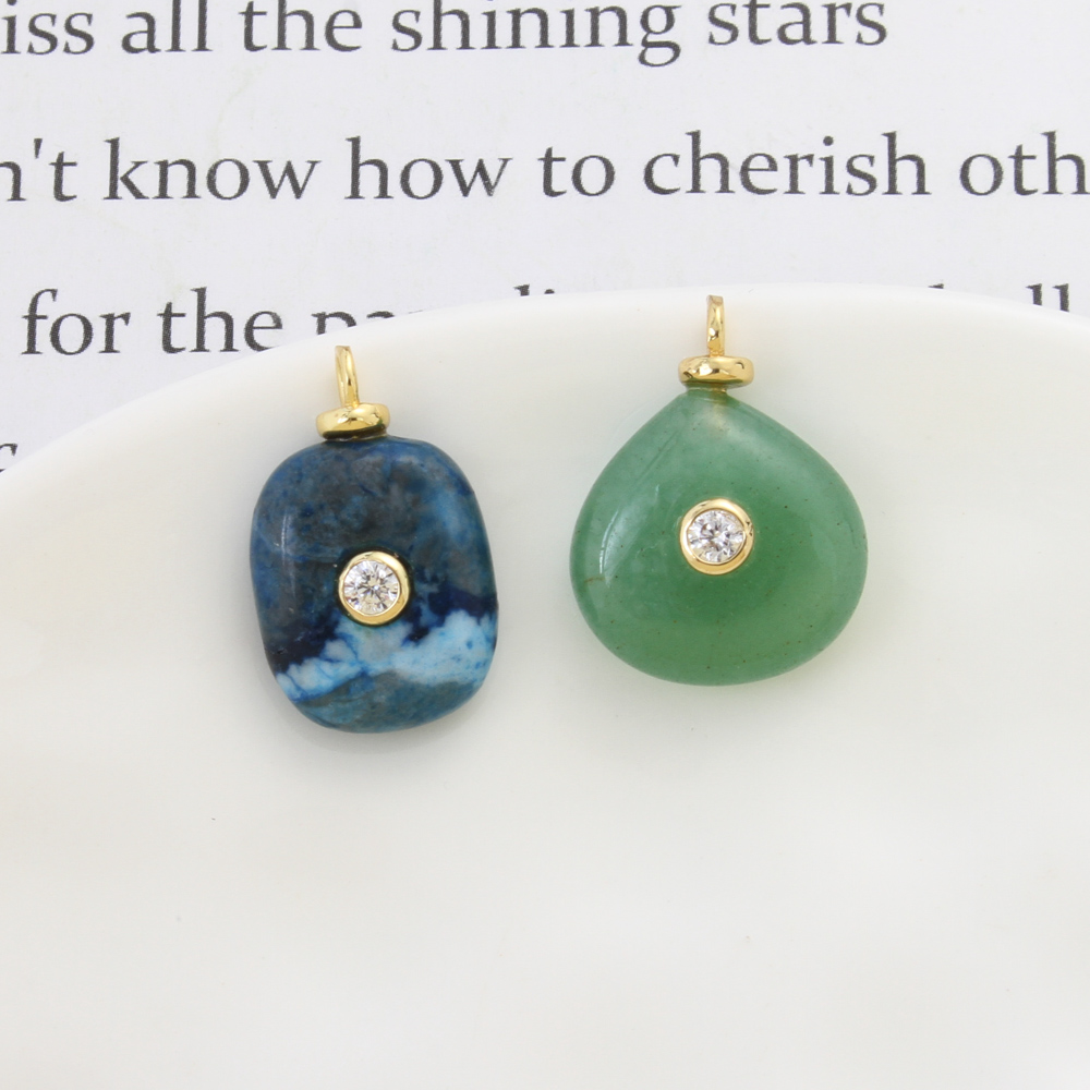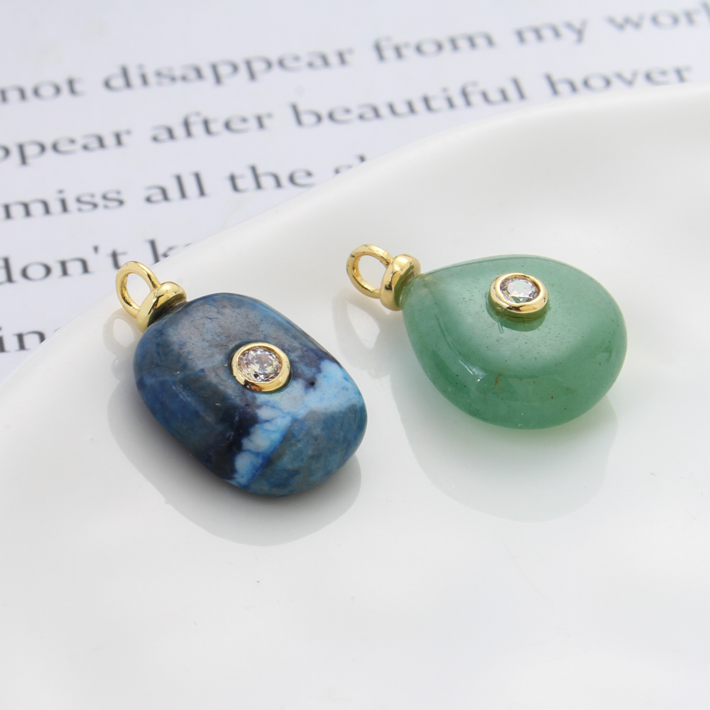 Gemstone Pendantifs en laiton, Pierre naturelle, avec laiton, Placage, DIY & pavé de micro zircon, plus de couleurs à choisir, Vendu par PC