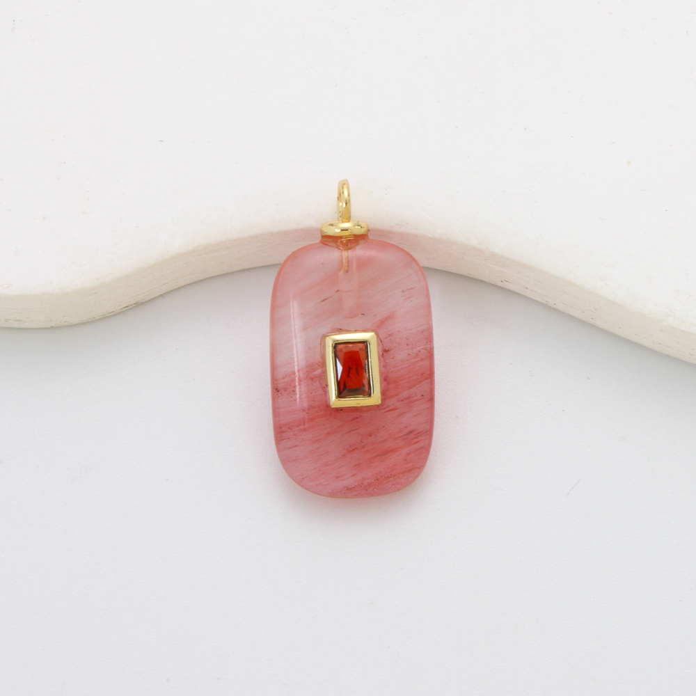 Gemstone Pendantifs en laiton, avec pierre gemme, Placage, DIY & pavé de micro zircon, plus de couleurs à choisir, protéger l'environnement, sans nickel, plomb et cadmium, 26.8x13.8x6.7mm, Vendu par PC