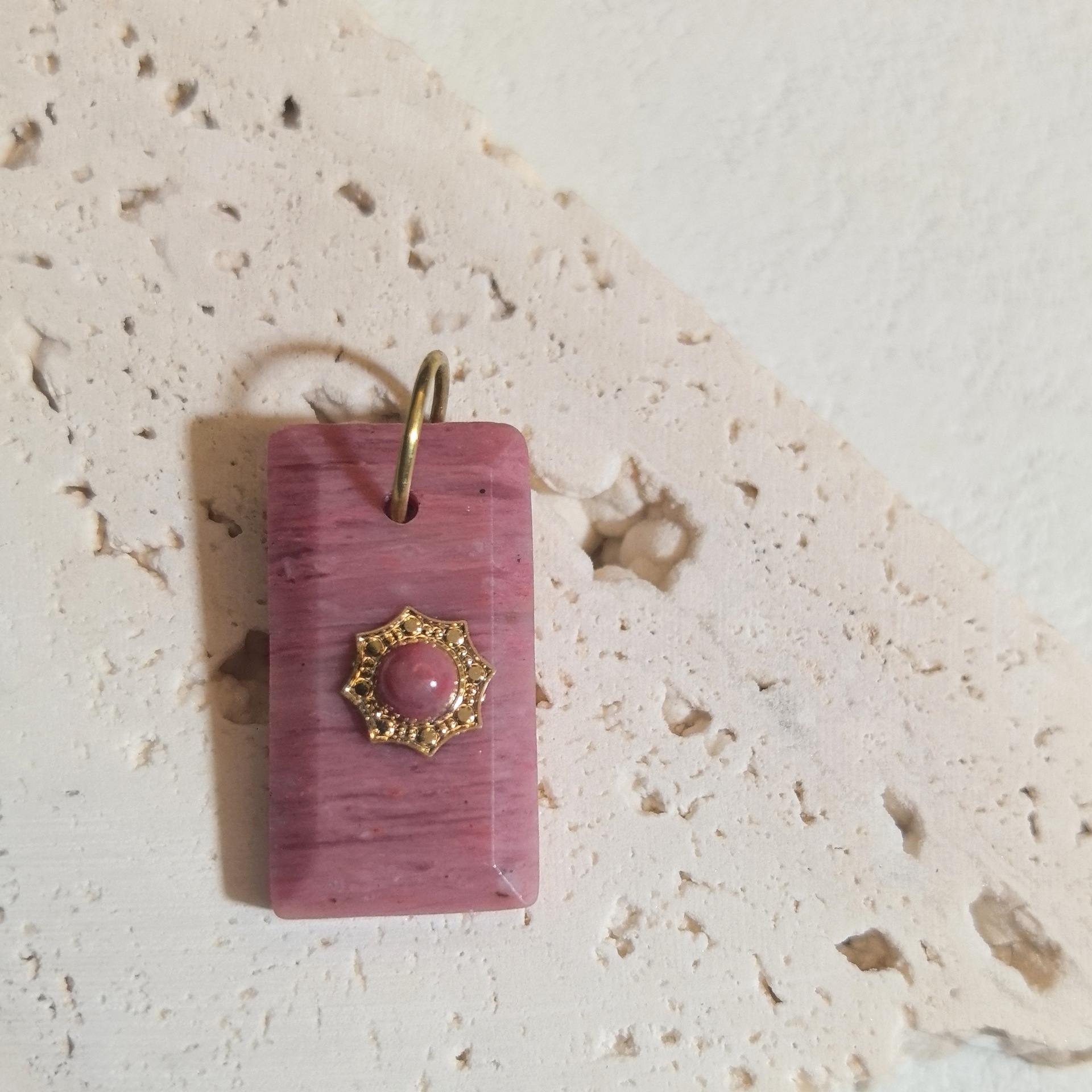 Gemstone Pendantifs en laiton, pierre gemme, avec laiton, rectangle, Plaqué de couleur d'or rose, naturel & différents matériaux pour le choix Environ Vendu par PC