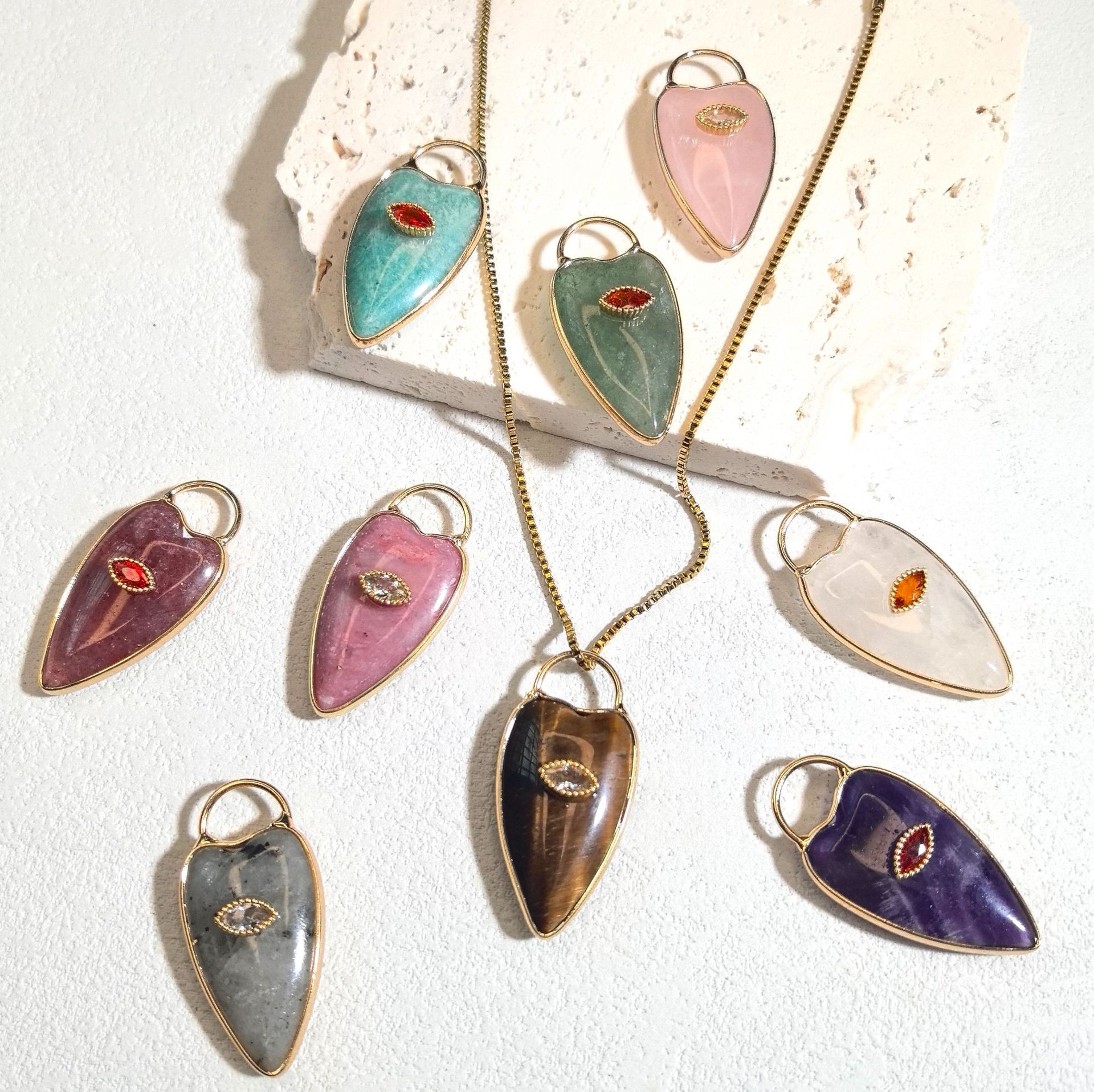 Gemstone Pendantifs en laiton, pierre gemme, avec laiton, coeur, poli, DIY & différents matériaux pour le choix & pavé de micro zircon, 18x34mm, Vendu par PC