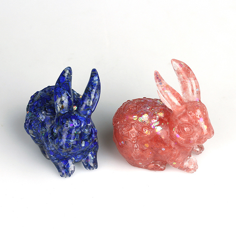 Gravier naturel décoration, avec résine, lapin, goutté d'époxy, différents matériaux pour le choix, 70x50x70mm, Vendu par PC