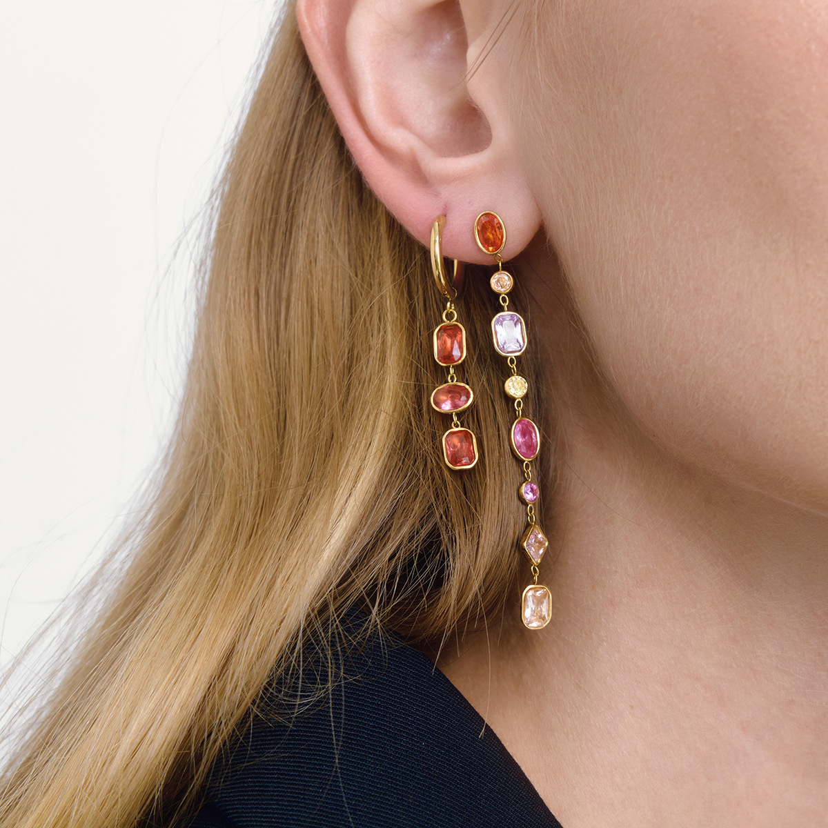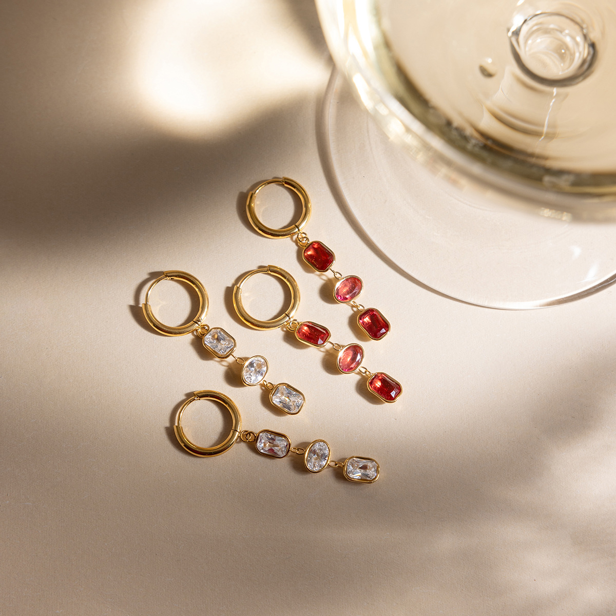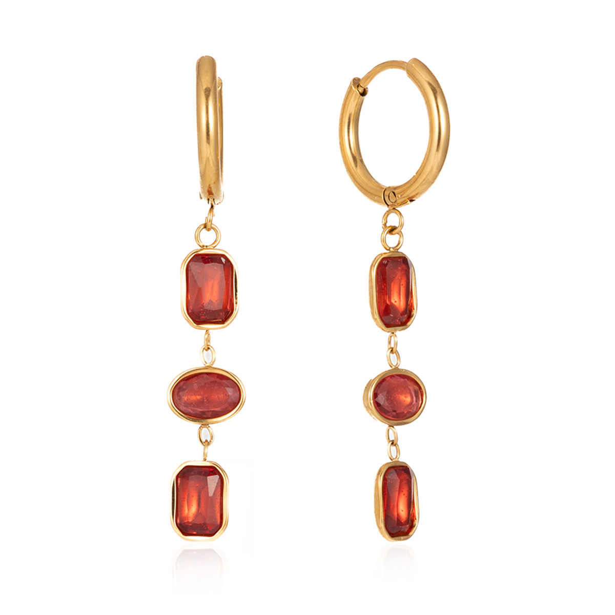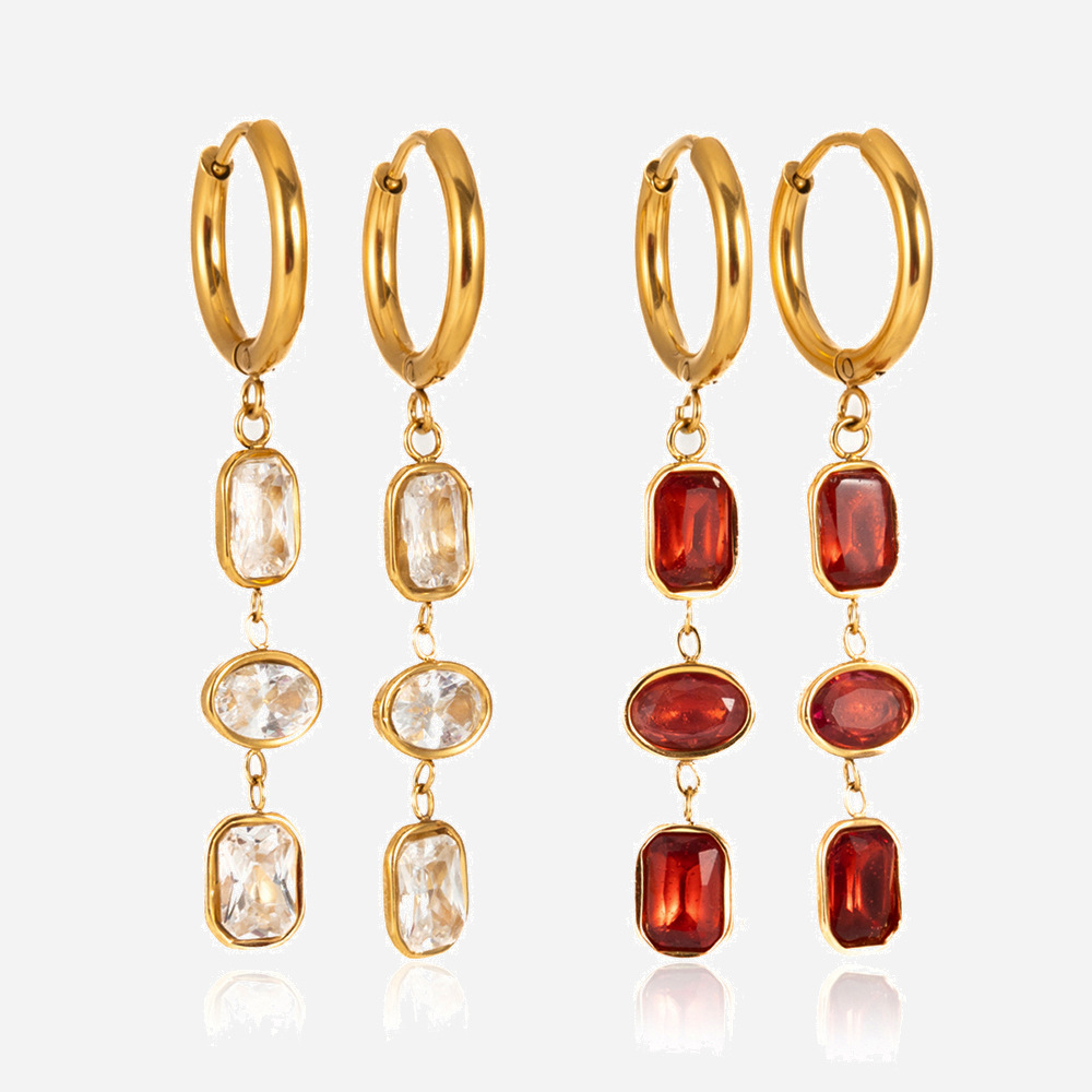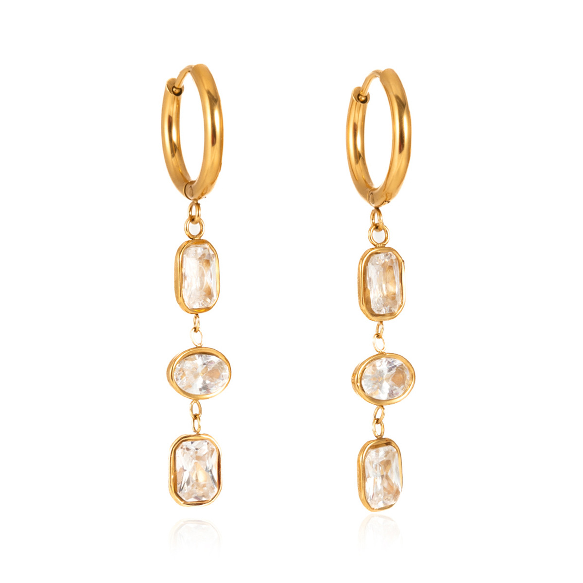 Huggie Hoop Drop Earring, acier inoxydable, avec zircon cubique, Plaqué or 18K, bijoux de mode & pour femme, plus de couleurs à choisir, 10.6x43.7mm, Vendu par paire