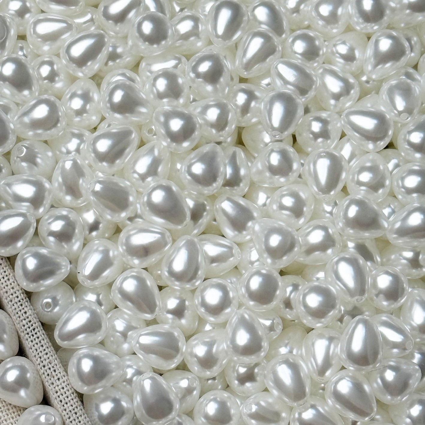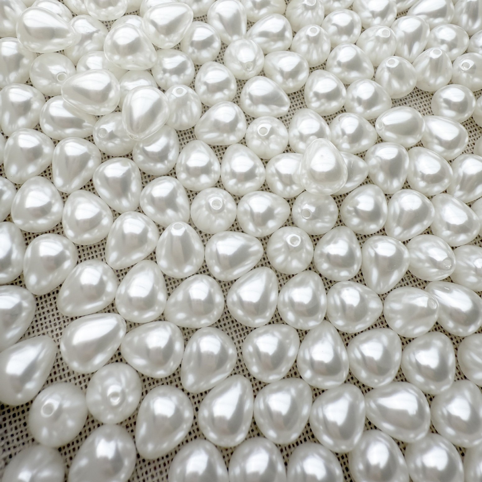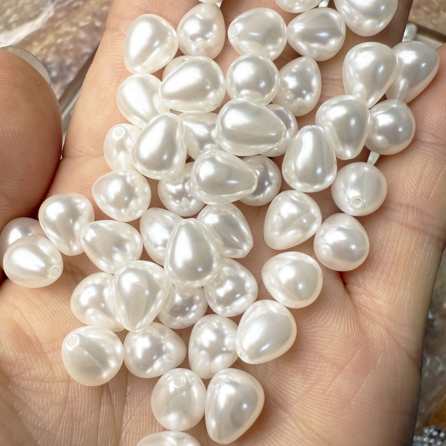 Imitations perles en plastique, perle de plastique, larme, DIY & semi-foré, blanc, 6x10mm, 100PC/sac, Vendu par sac
