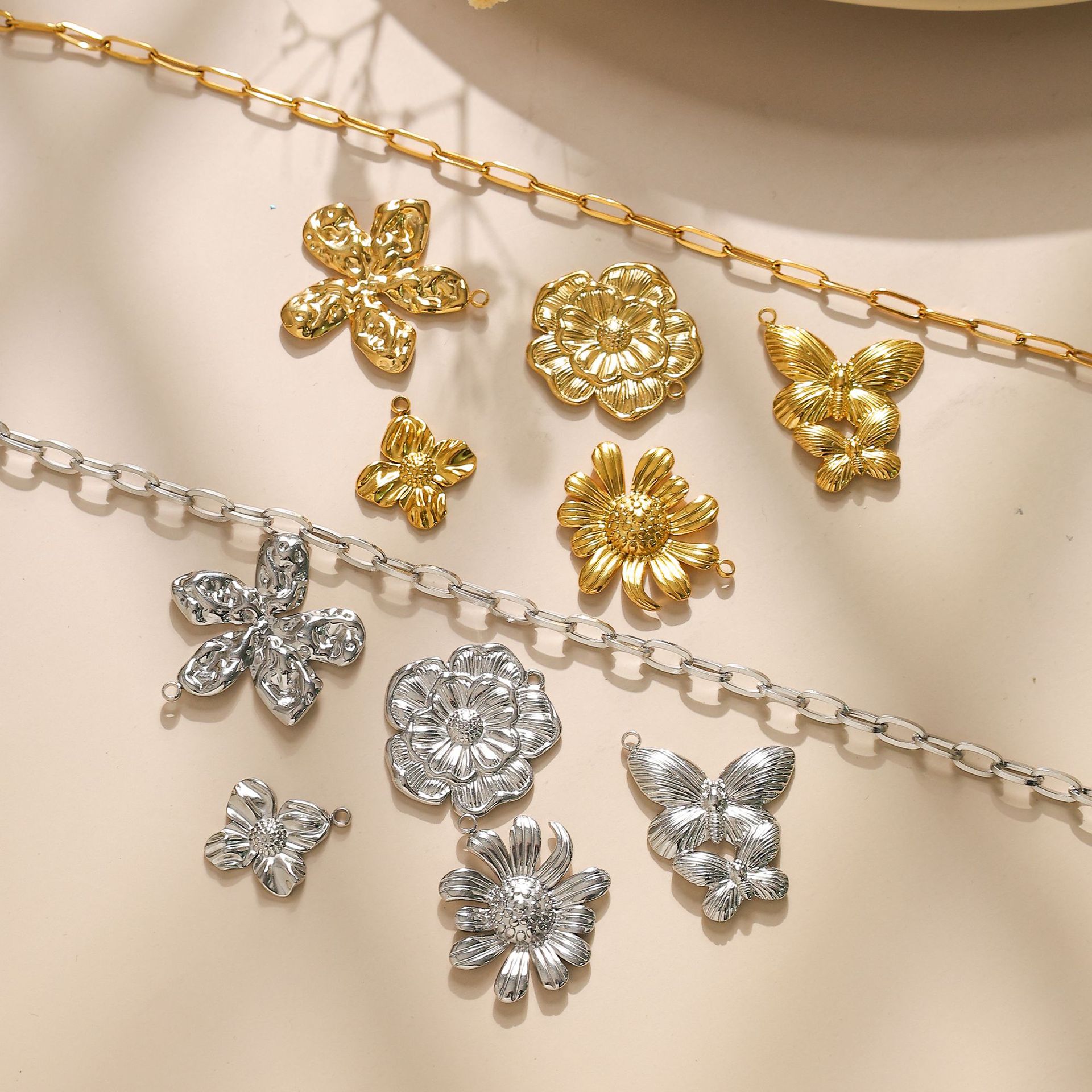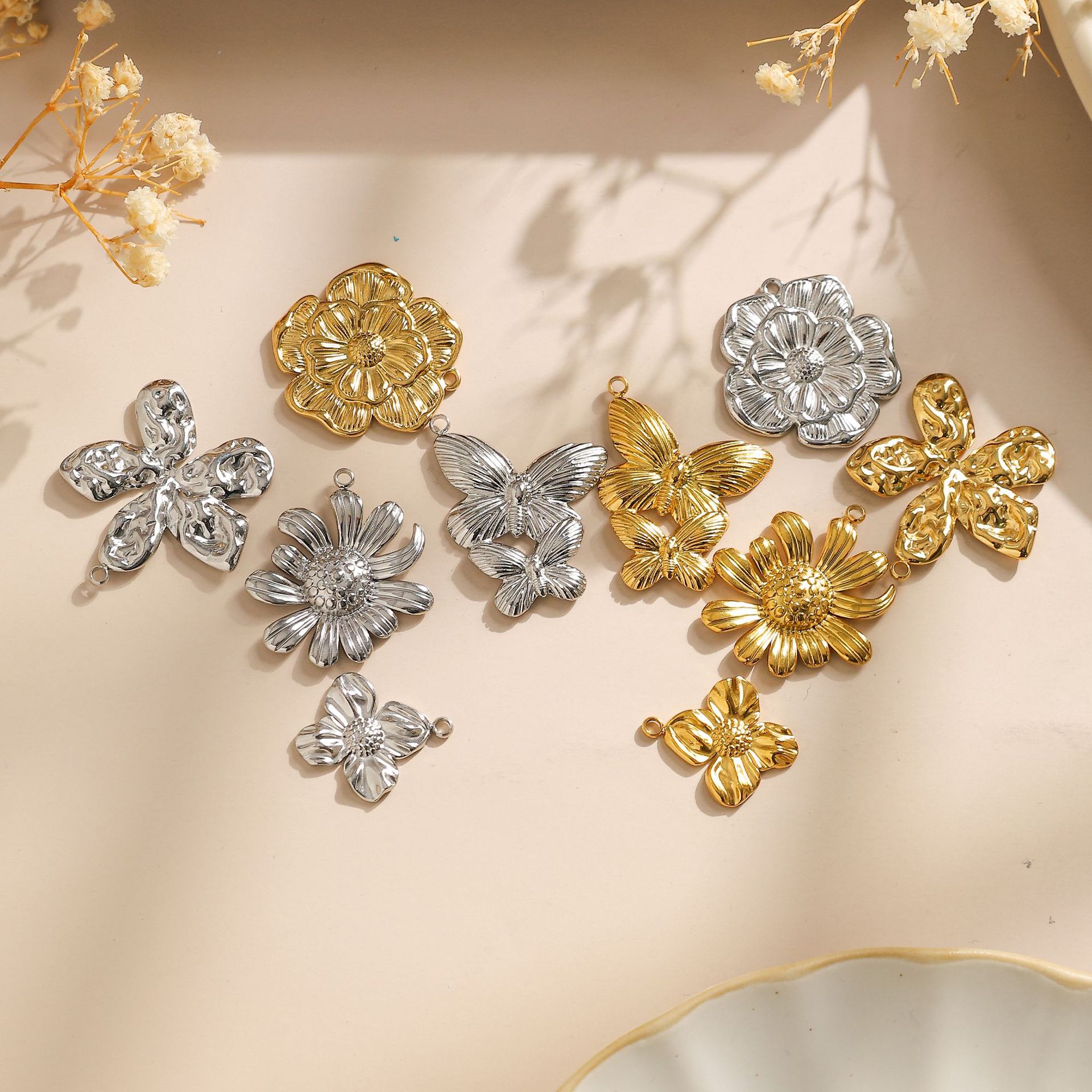 Inoxydable acier Pendentif Fleur, Acier inoxydable 304, Placage ionique sous vide, Forme différente pour le choix & DIY, plus de couleurs à choisir, 10PC/sac, Vendu par sac