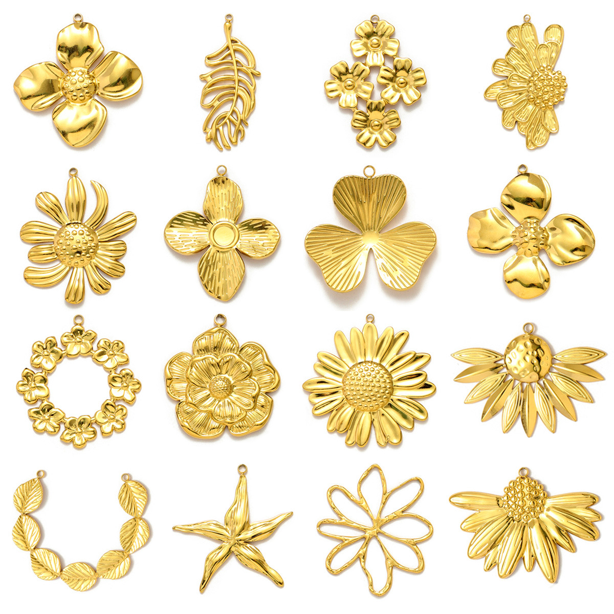 Inoxydable acier Pendentif Fleur, Acier inoxydable 304, Placage ionique sous vide, Forme différente pour le choix & DIY, plus de couleurs à choisir, 10PC/sac, Vendu par sac