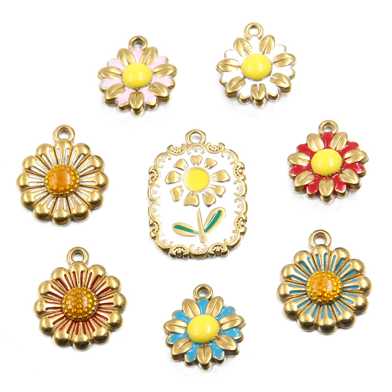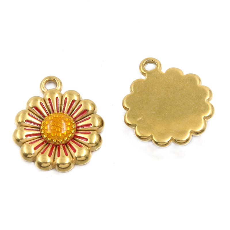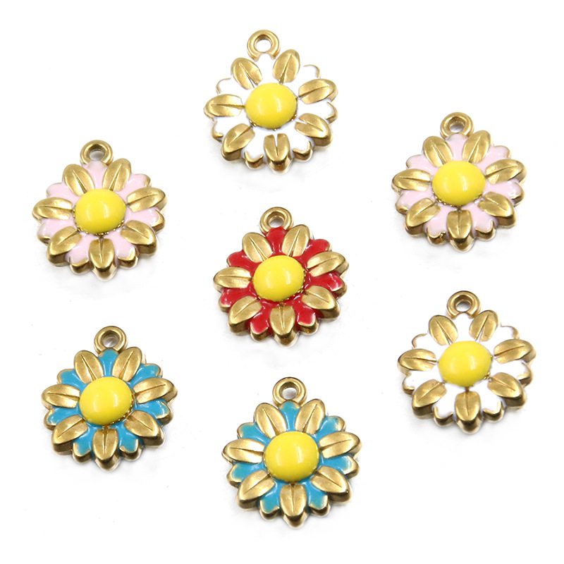Inoxydable acier Pendentif Fleur, Acier inoxydable 304, Placage ionique sous vide, DIY & normes différentes pour le choix & émail, plus de couleurs à choisir, 10PC/sac, Vendu par sac