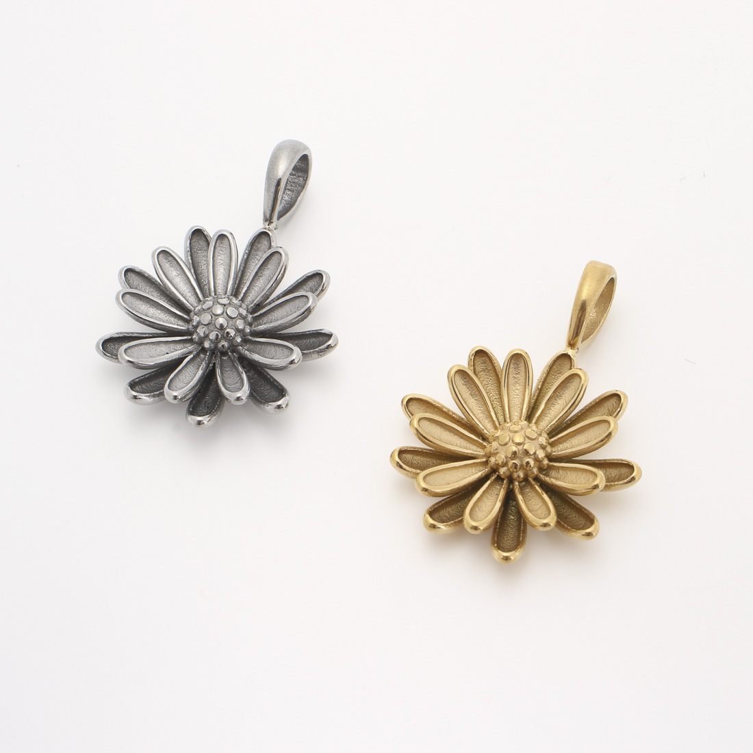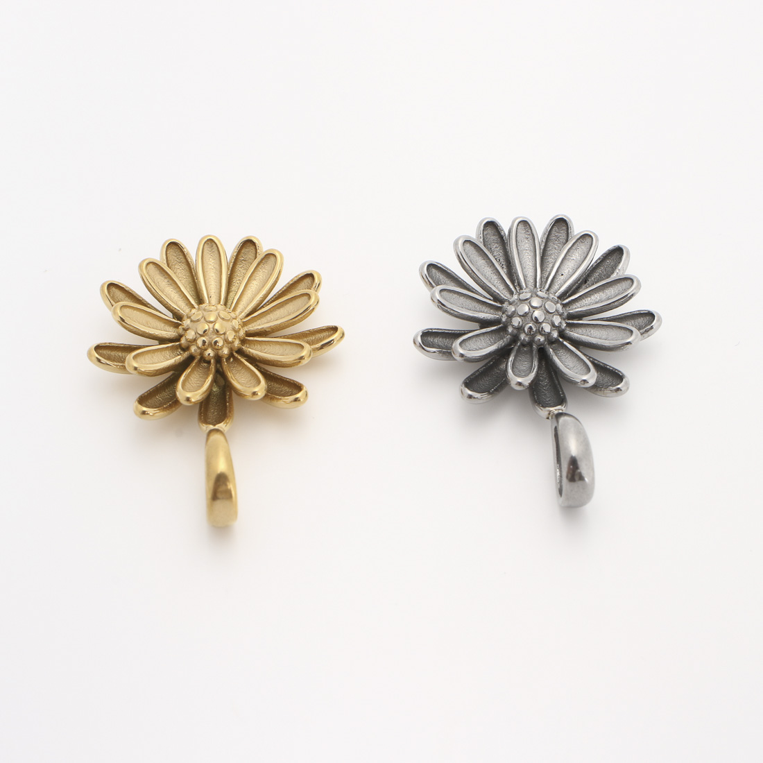 Inoxydable acier Pendentif Fleur, acier inoxydable 316L, noircir Environ 5mm, Vendu par PC