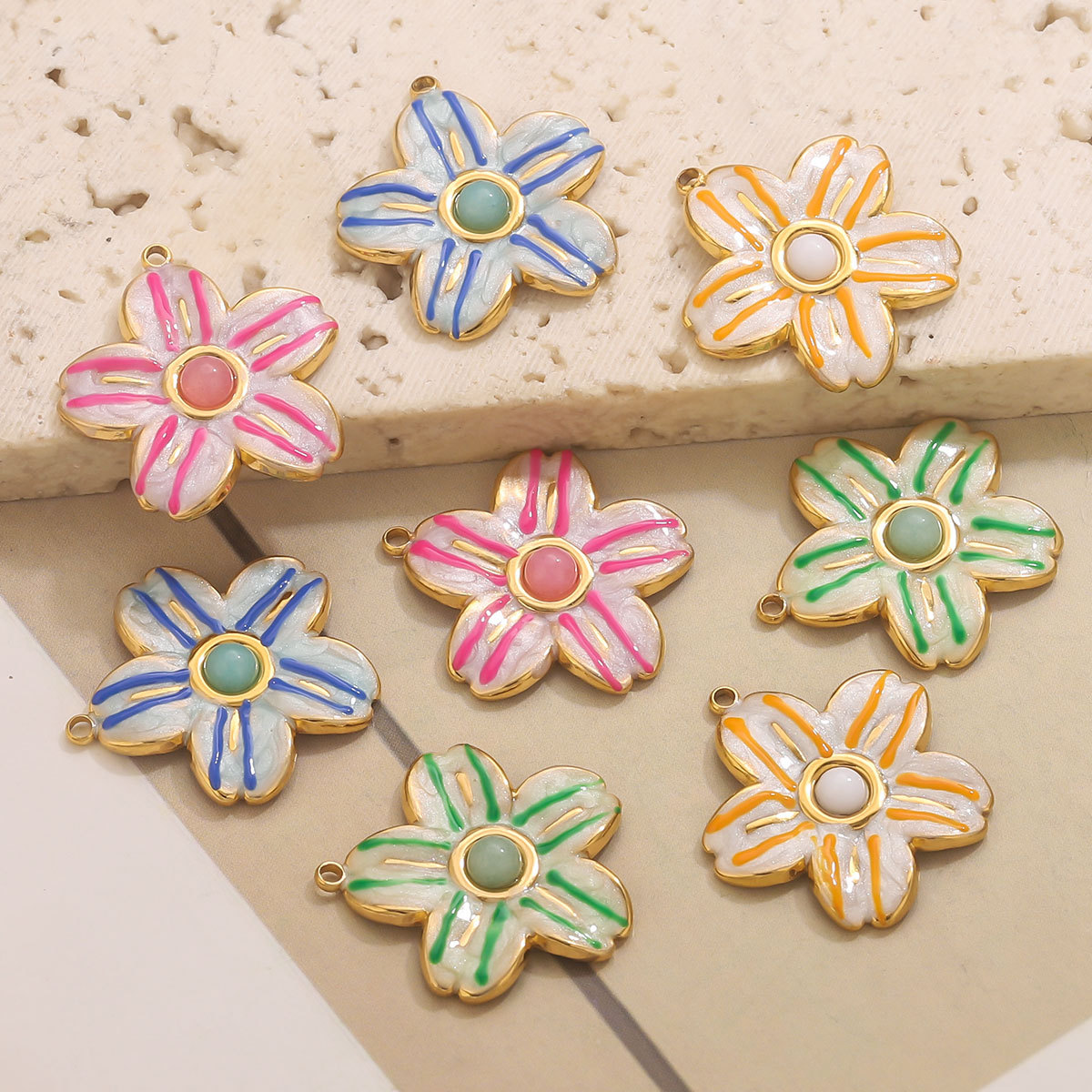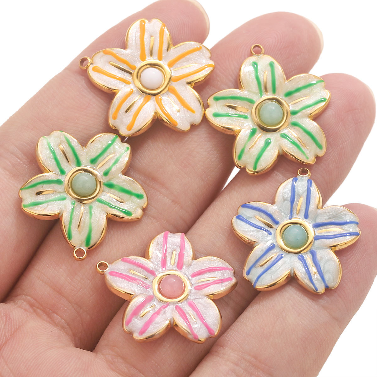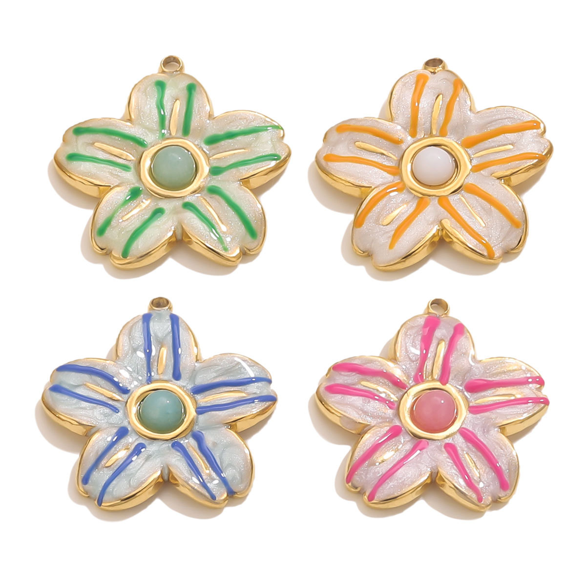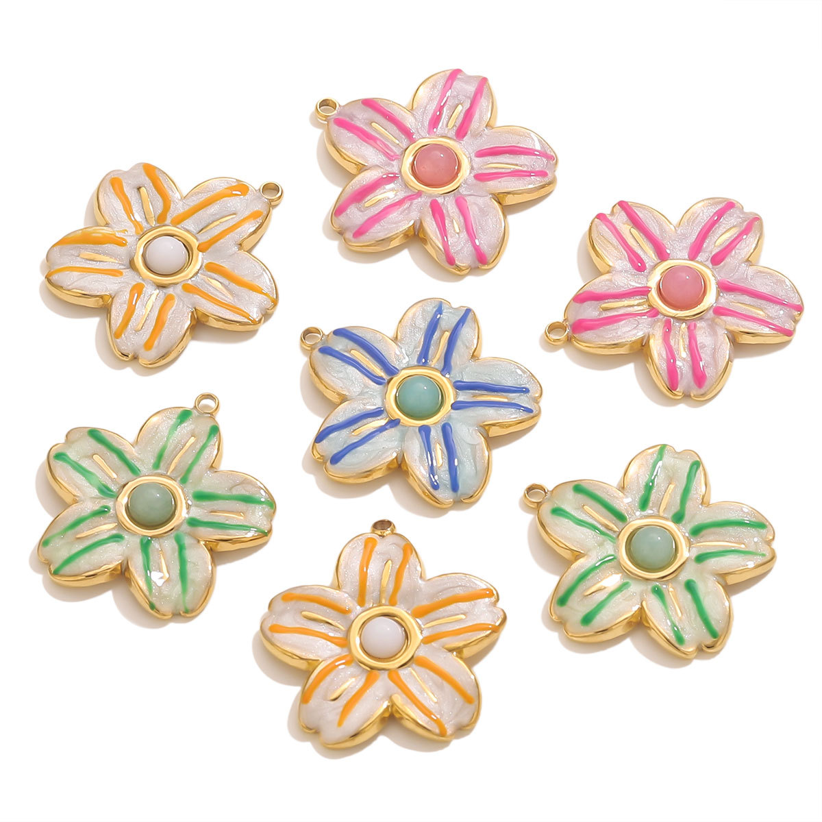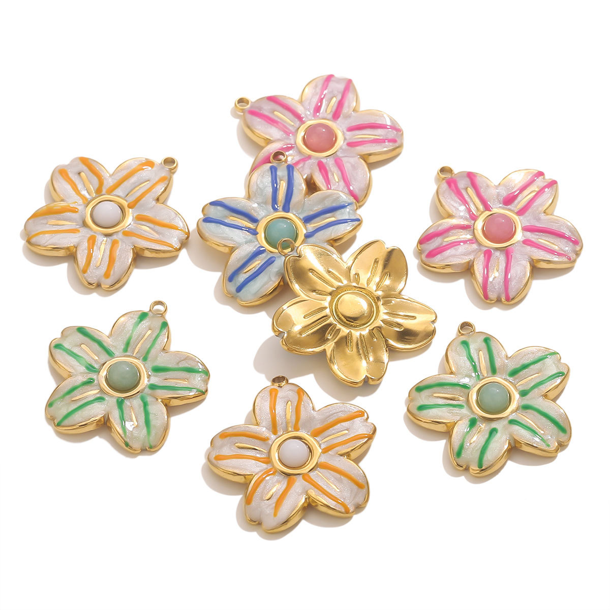 Inoxydable acier Pendentif Fleur, Acier inoxydable 304, Plaqué or 18K, DIY & émail, plus de couleurs à choisir, Vendu par PC