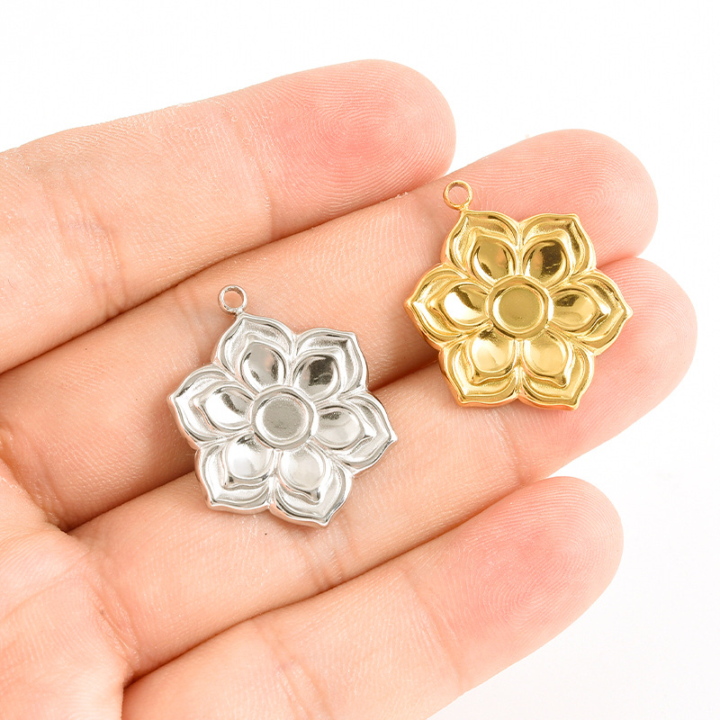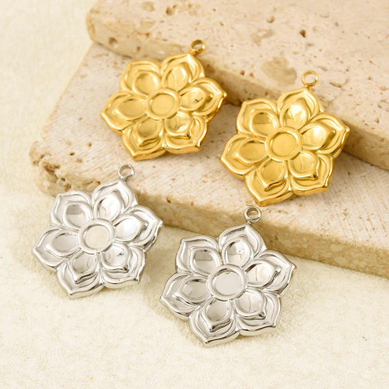 Inoxydable acier Pendentif Fleur, Acier inoxydable 304, Placage, DIY, plus de couleurs à choisir, 10PC/sac, Vendu par sac