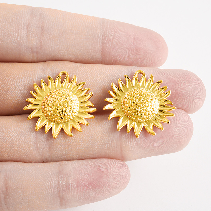 Inoxydable acier Pendentif Fleur, Acier inoxydable 304, Tournesol, Placage, DIY, plus de couleurs à choisir, 10PC/sac, Vendu par sac