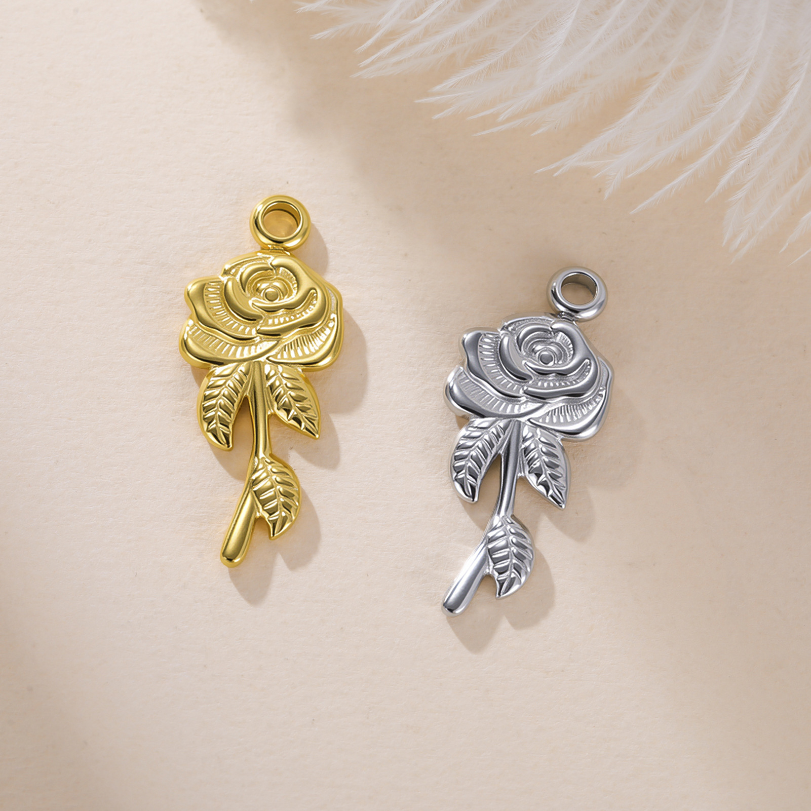 Inoxydable acier Pendentif Fleur, Acier inoxydable 304, Rose, Placage, DIY, plus de couleurs à choisir, 14.3x34.4mm, 10PC/sac, Vendu par sac