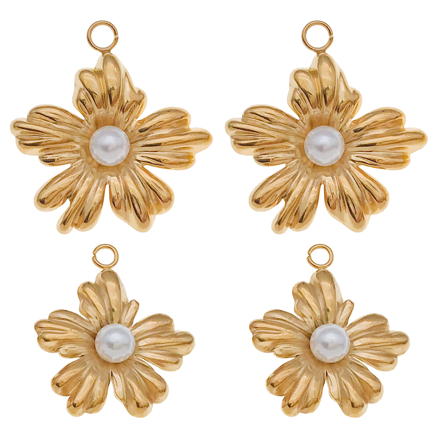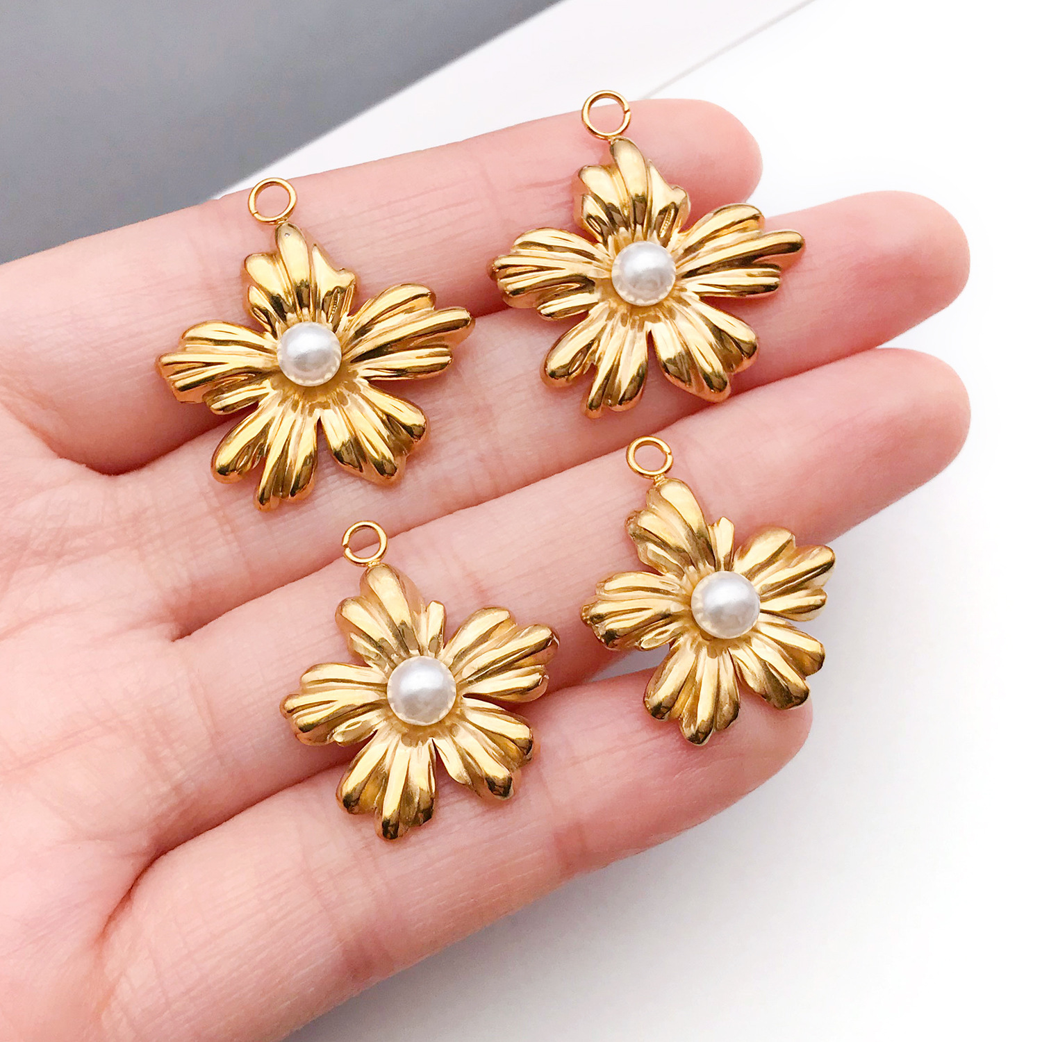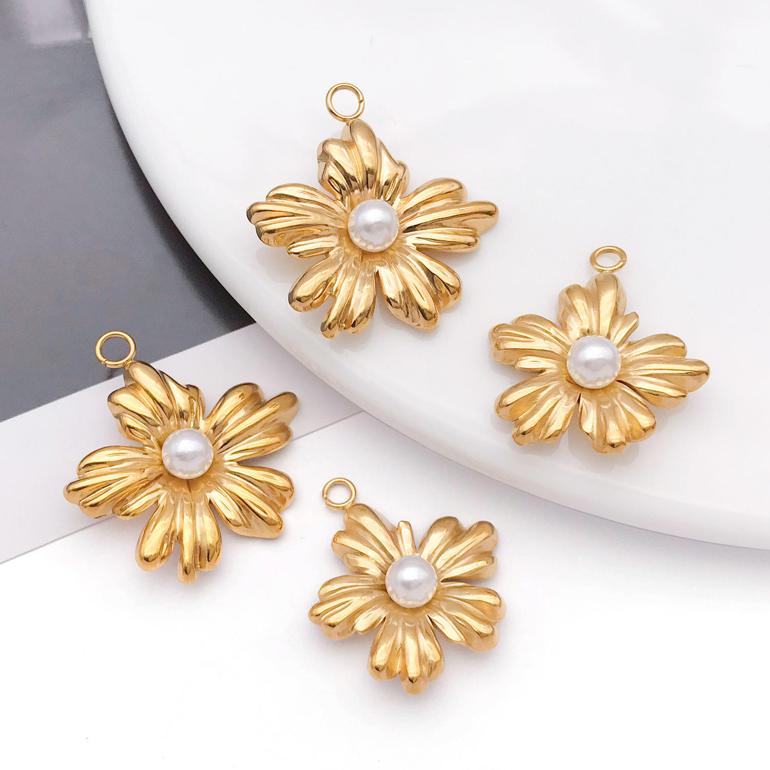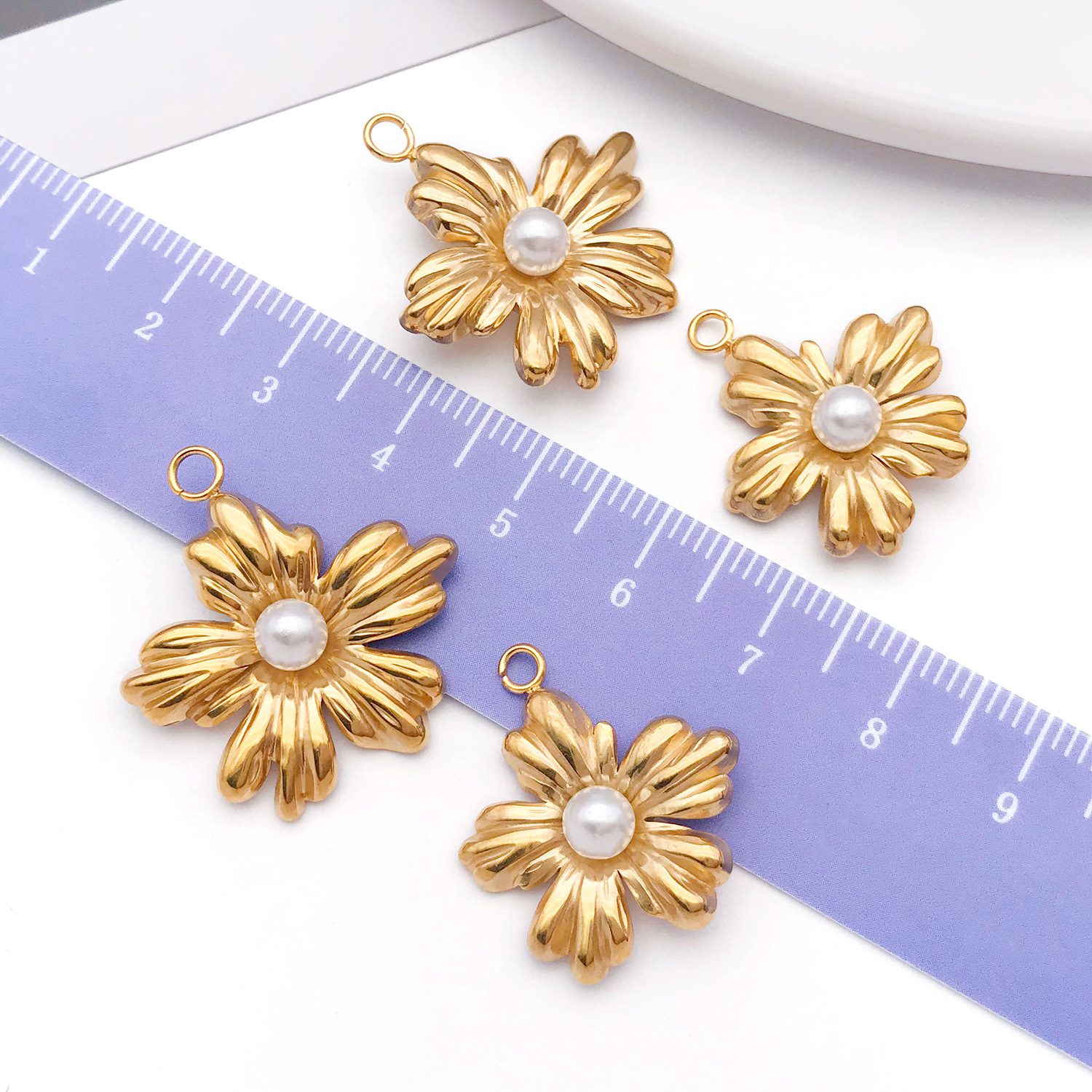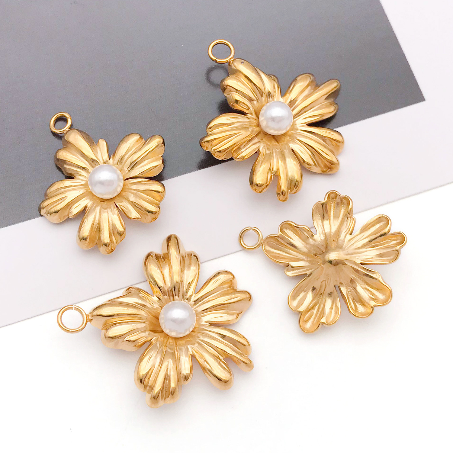 Inoxydable acier Pendentif Fleur, Acier inoxydable 304, avec perle de plastique, Placage de couleur d'or, DIY & normes différentes pour le choix, Vendu par PC