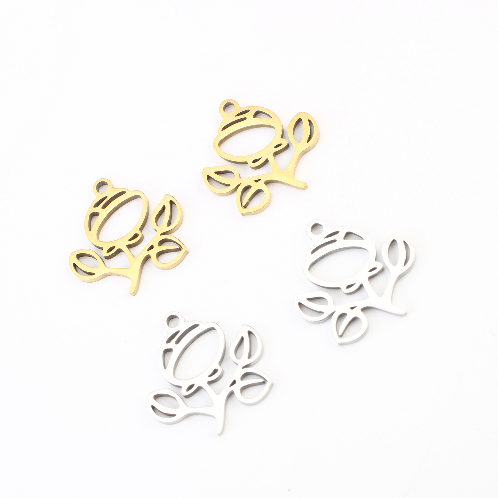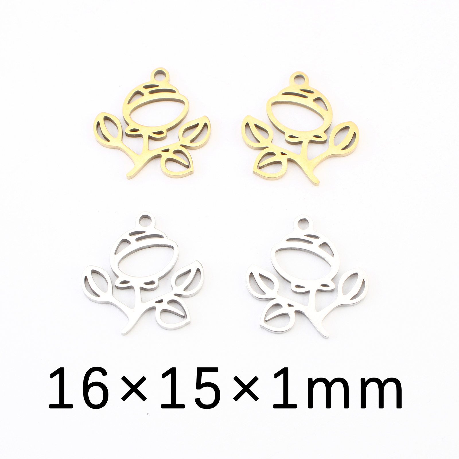 Inoxydable acier Pendentif Fleur, Acier inoxydable 304, Placage, DIY & creux, plus de couleurs à choisir, 16x15x1mm, 20PC/lot, Vendu par lot