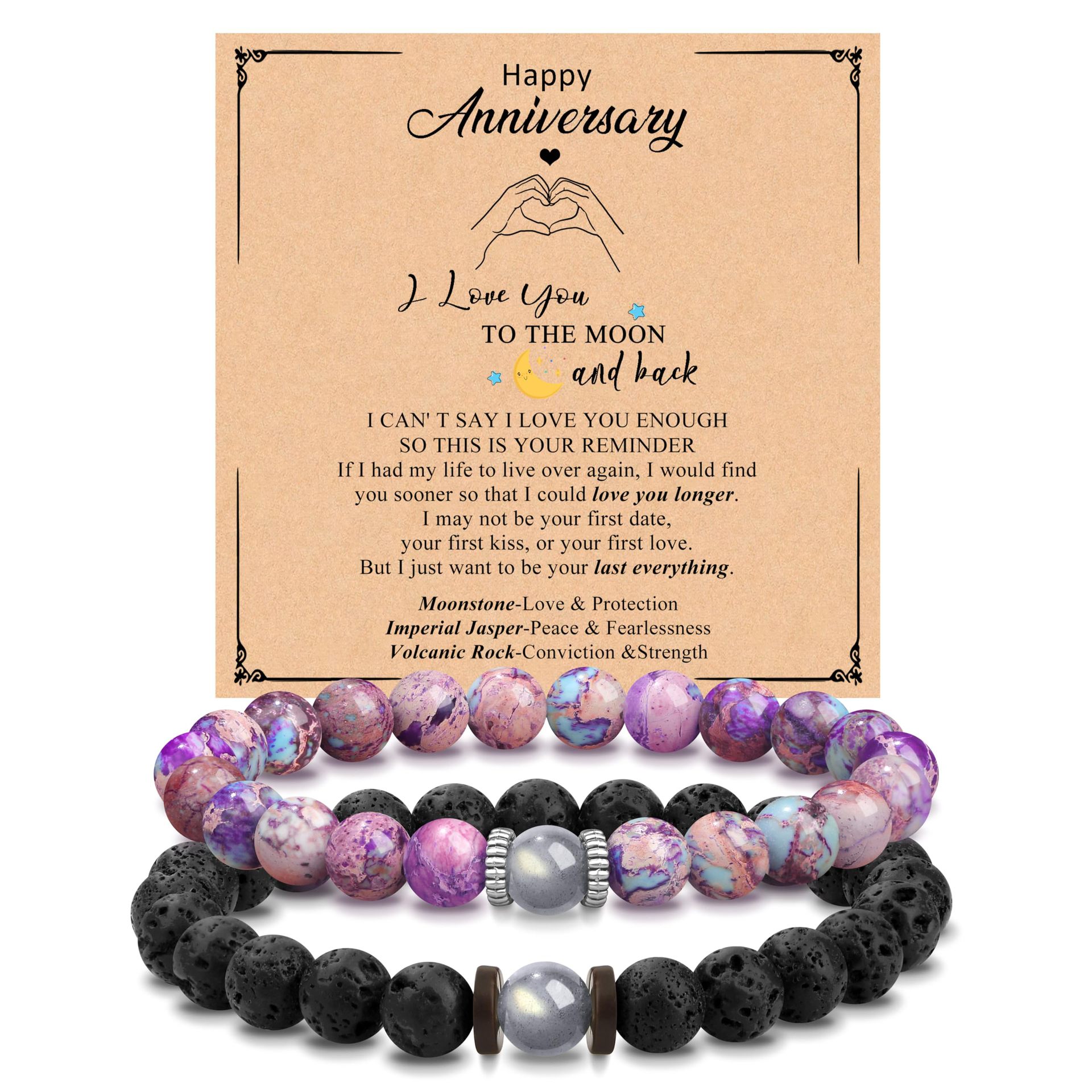 Jaspe d'impression Bracelet de couples, avec Moonstone & lave volcanique & bois, Rond, fait à la main, styles différents pour le choix & pour le couple, beads length 8mm, Longueur:Environ 6-9 pouce, Vendu par fixé