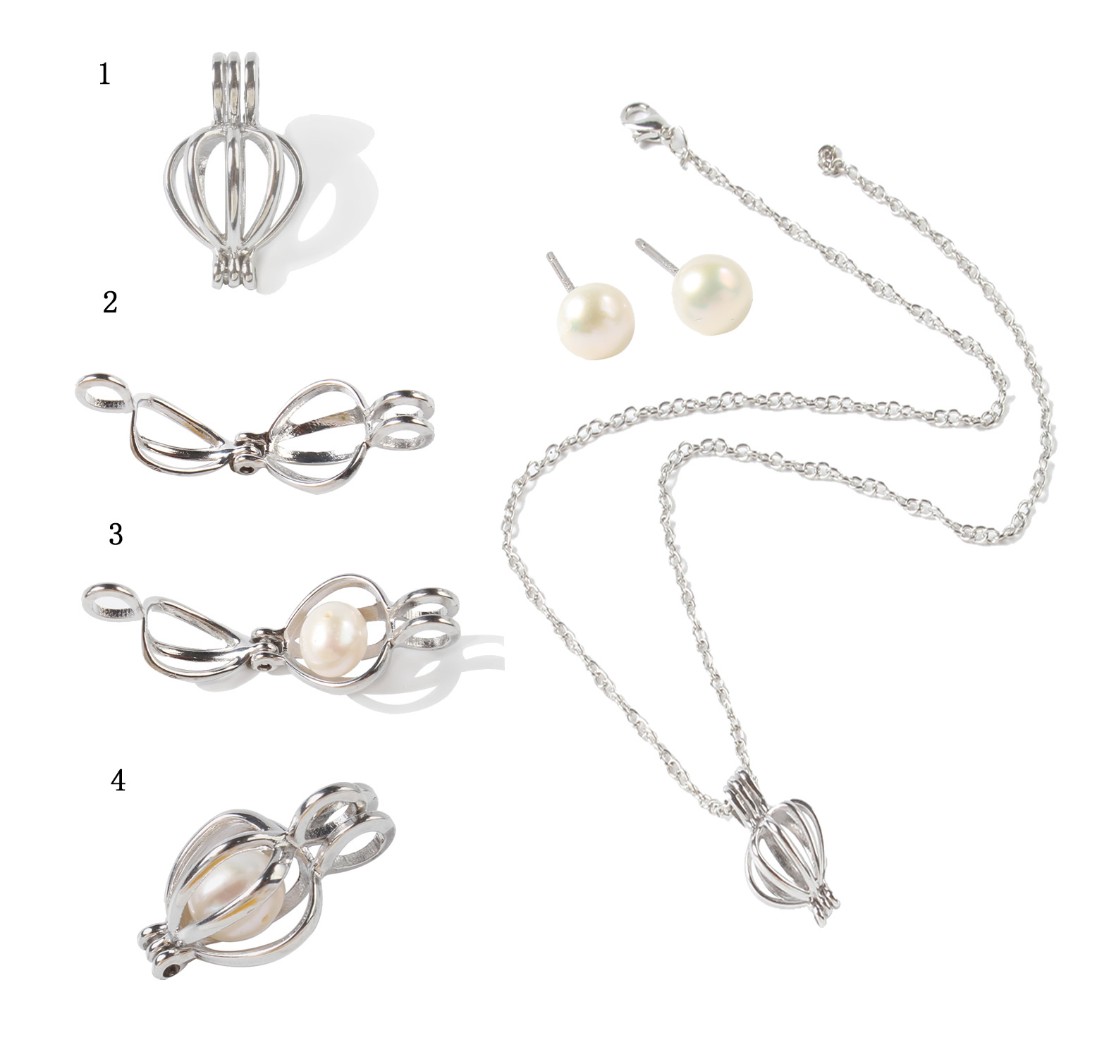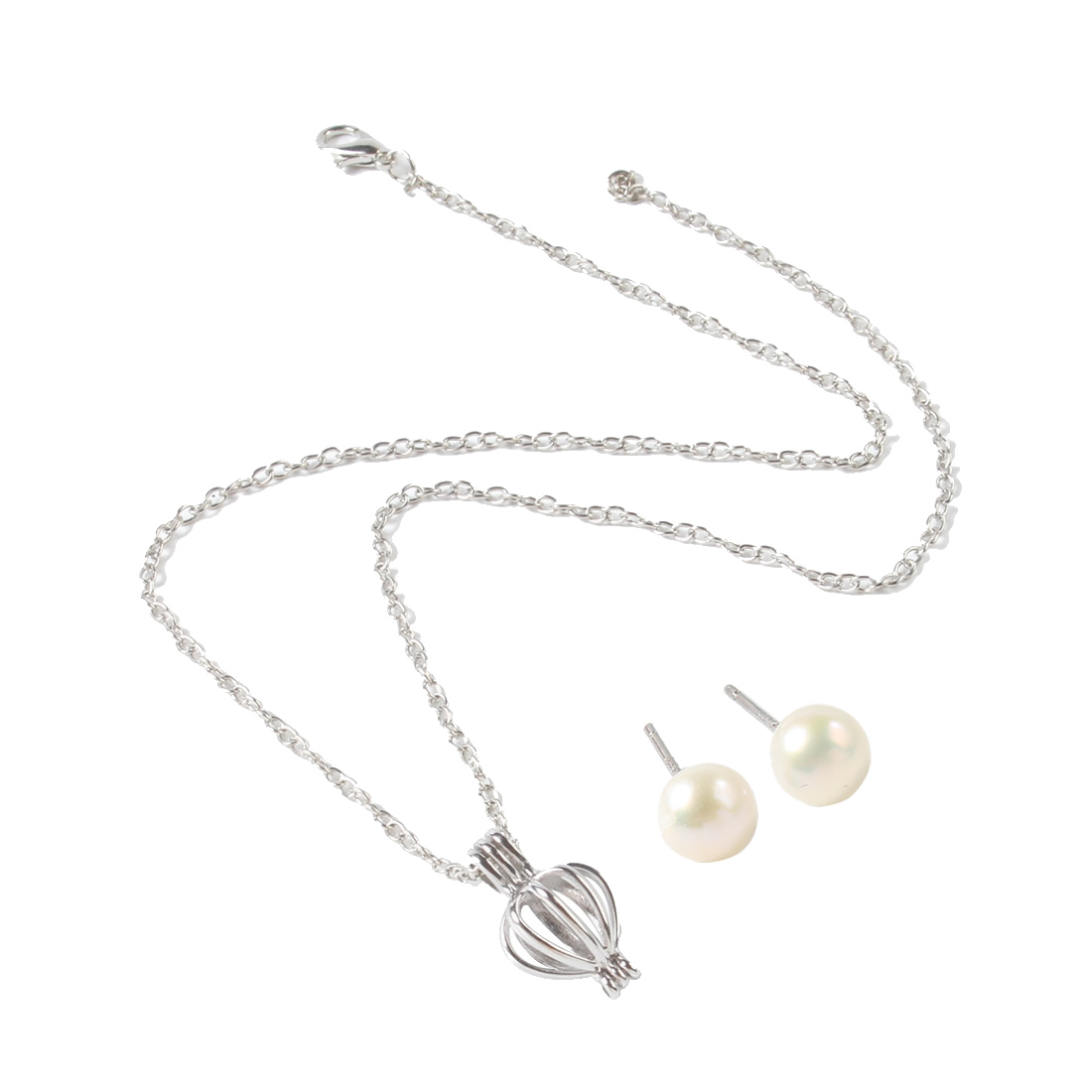 Kit de perles Oyster & Wish, perle d'eau douce cultivée, pendentif & bague, anneau & boucle d'oreille & collier, avec coquille & alliage de zinc, Placage de couleur platine, 20-30cm  Environ 18 pouce, Vendu par fixé