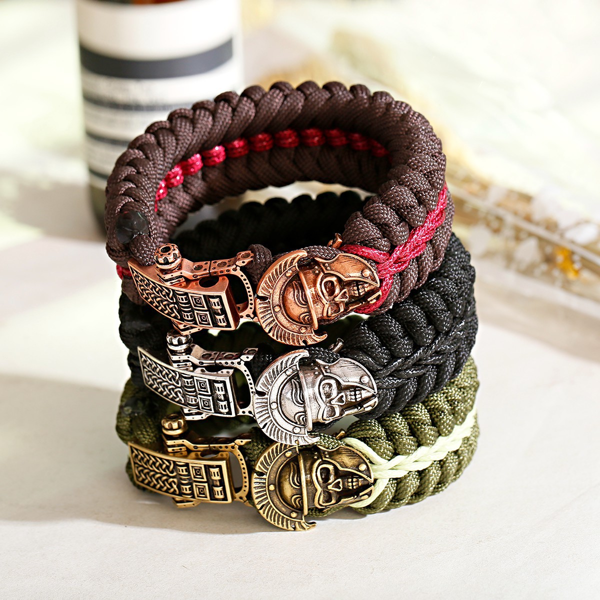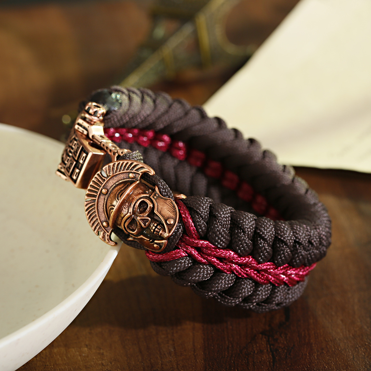 Laine cordon Bracelet, Corde de parachute, avec laiton, crane, Placage, bijoux de mode & pour homme, plus de couleurs à choisir, Longueur:Environ 17-19 cm, Vendu par PC