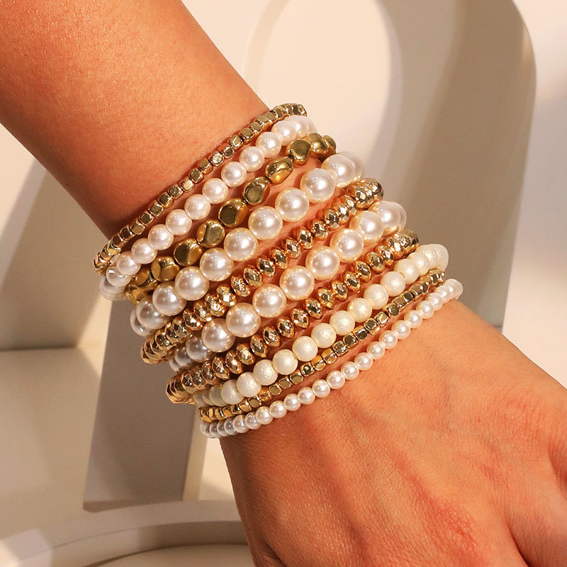 Laine cordon Bracelet, perle de plastique, avec plastique revêtu de cuivre, bijoux de mode, plus de couleurs à choisir, 10PC/fixé, Vendu par fixé