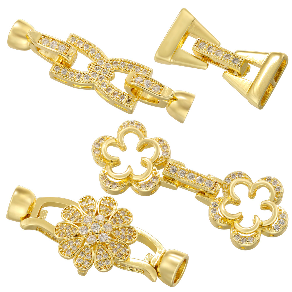 Laiton Boucle déployante, DIY & styles différents pour le choix & pavé de micro zircon, plus de couleurs à choisir, Vendu par PC