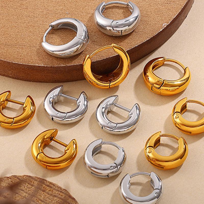 Mens acier inoxydable Hoop boucles d'oreilles, acier inoxydable boucle d'oreille anneau, beignet, pour homme & poudre d'étoile, doré Vendu par paire