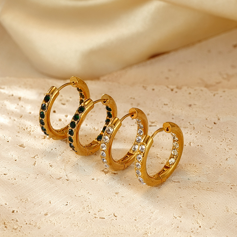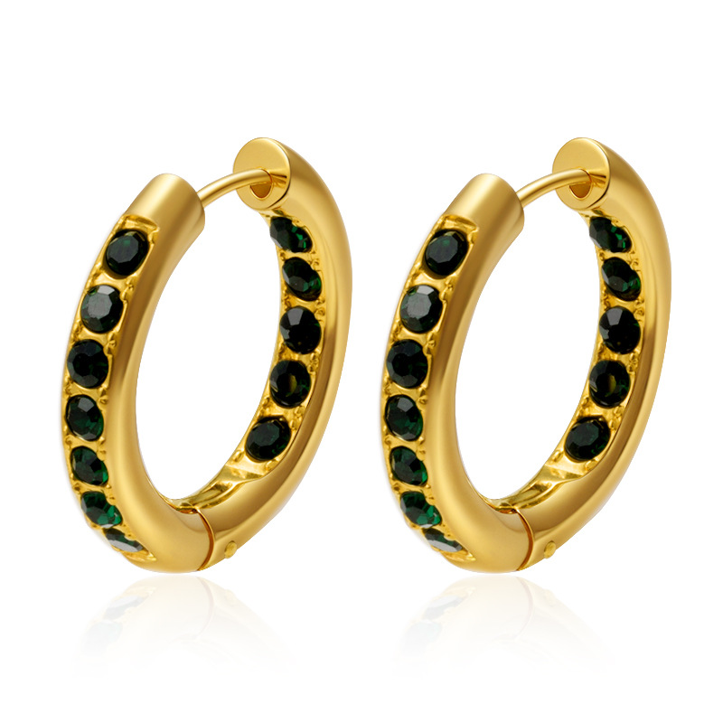 Mens acier inoxydable Hoop boucles d'oreilles, Acier inoxydable 304, Placage de couleur d'or, bijoux de mode & avec strass, doré, Vendu par paire