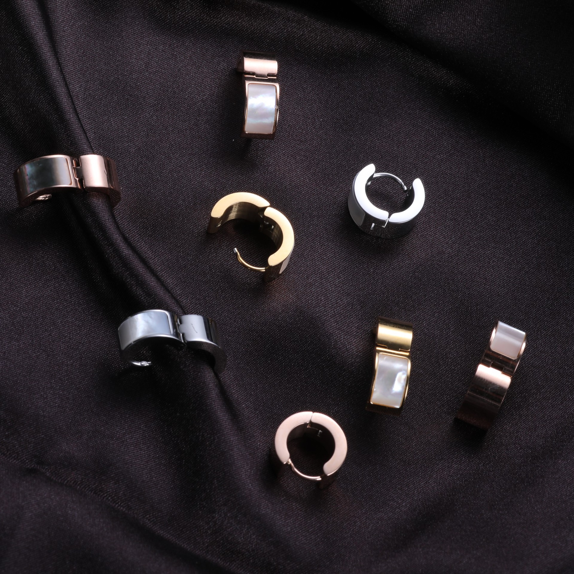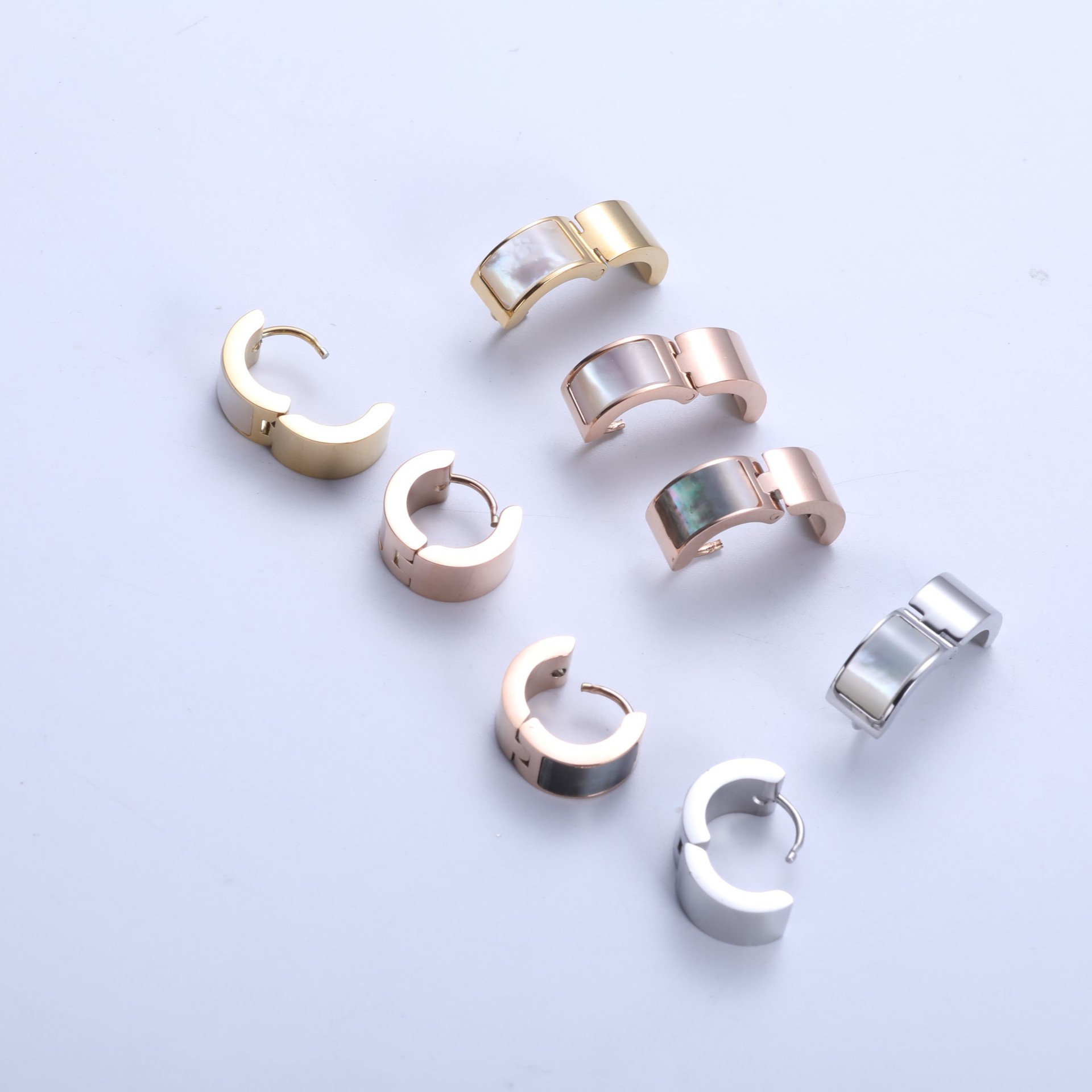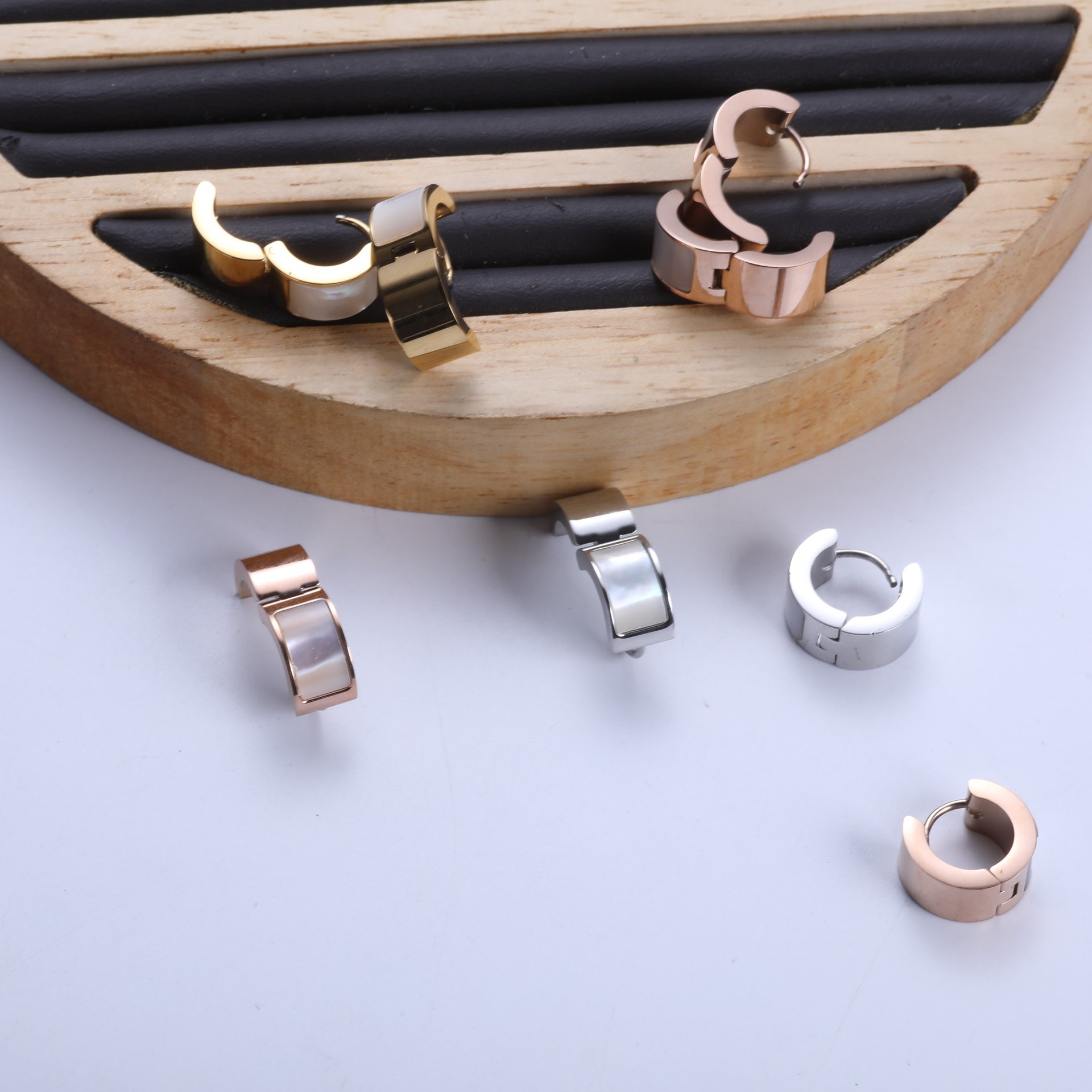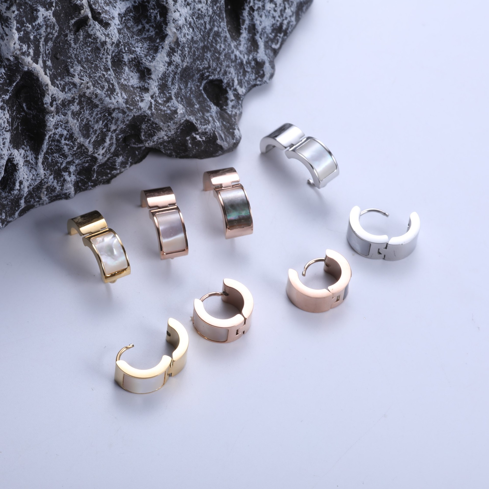 Mens acier inoxydable Hoop boucles d'oreilles, Acier inoxydable 304, avec coquille, Placage, bijoux de mode, plus de couleurs à choisir, Vendu par paire