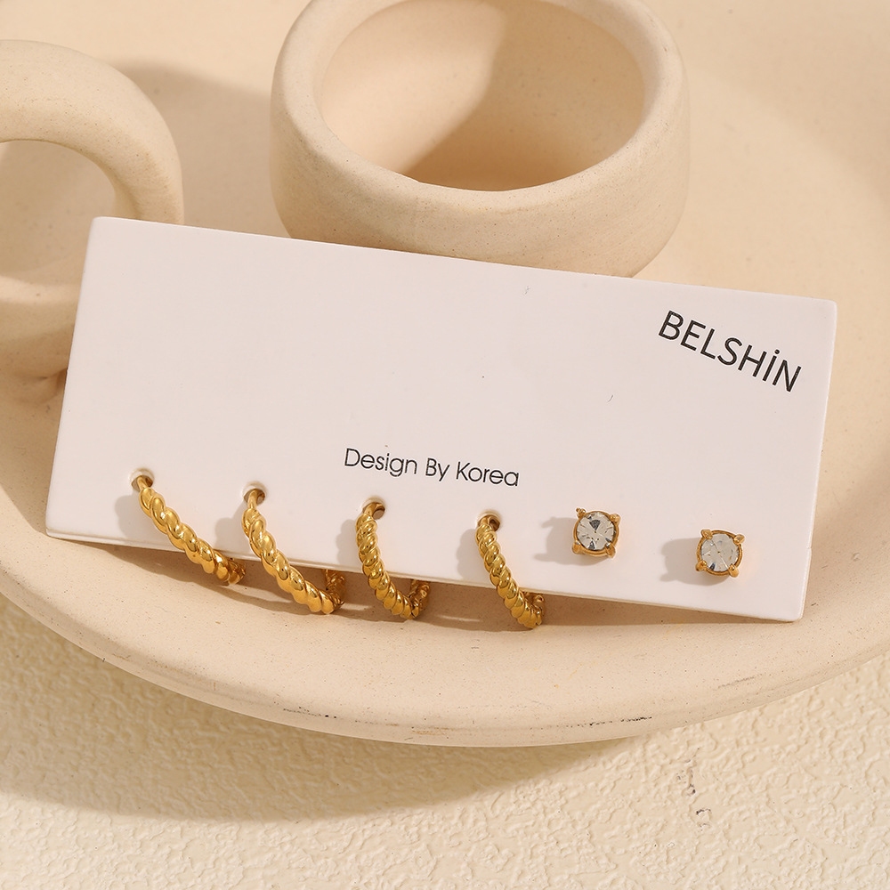 Mens acier inoxydable Hoop boucles d'oreilles, Acier inoxydable 304, Placage de couleur d'or, pour femme & avec strass, Vendu par fixé