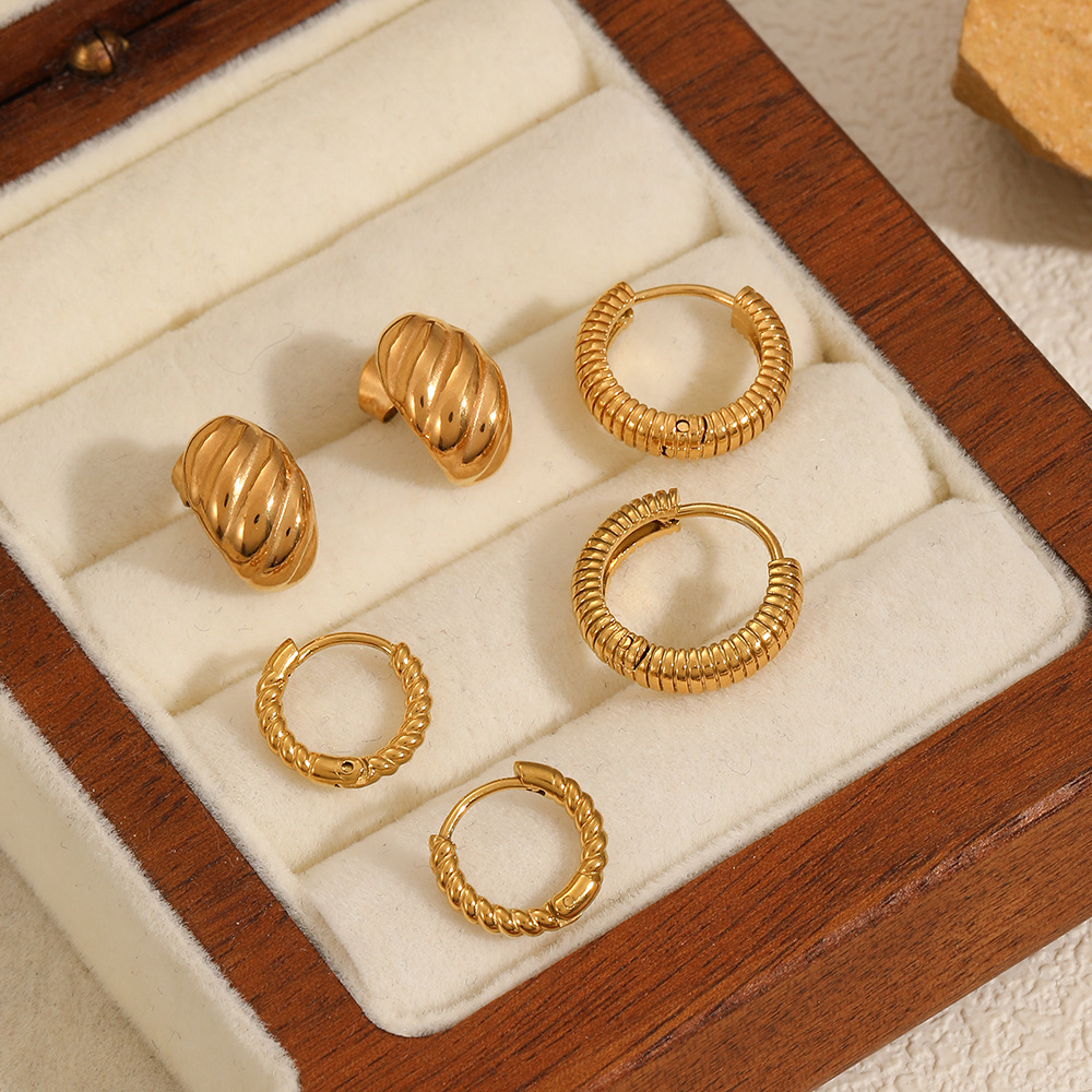 Mens acier inoxydable Hoop boucles d'oreilles, Acier inoxydable 304, Placage de couleur d'or, pour femme, Vendu par fixé