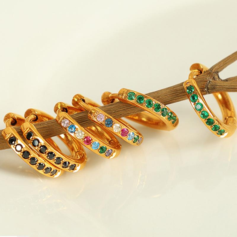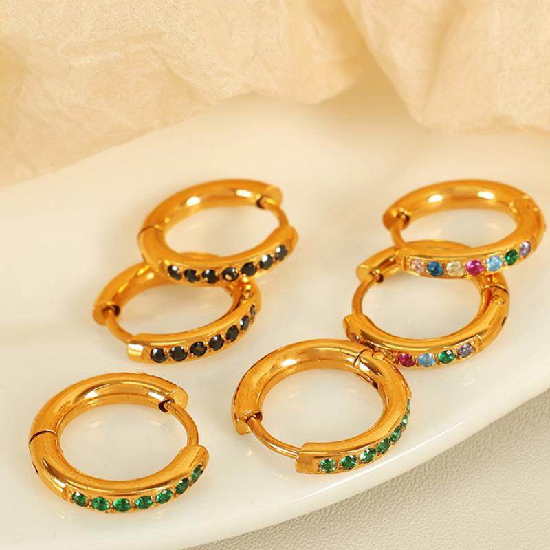 Mens acier inoxydable Hoop boucles d'oreilles, Acier inoxydable 304, Plaqué or 18K, bijoux de mode & pour femme & avec strass, plus de couleurs à choisir, Vendu par paire