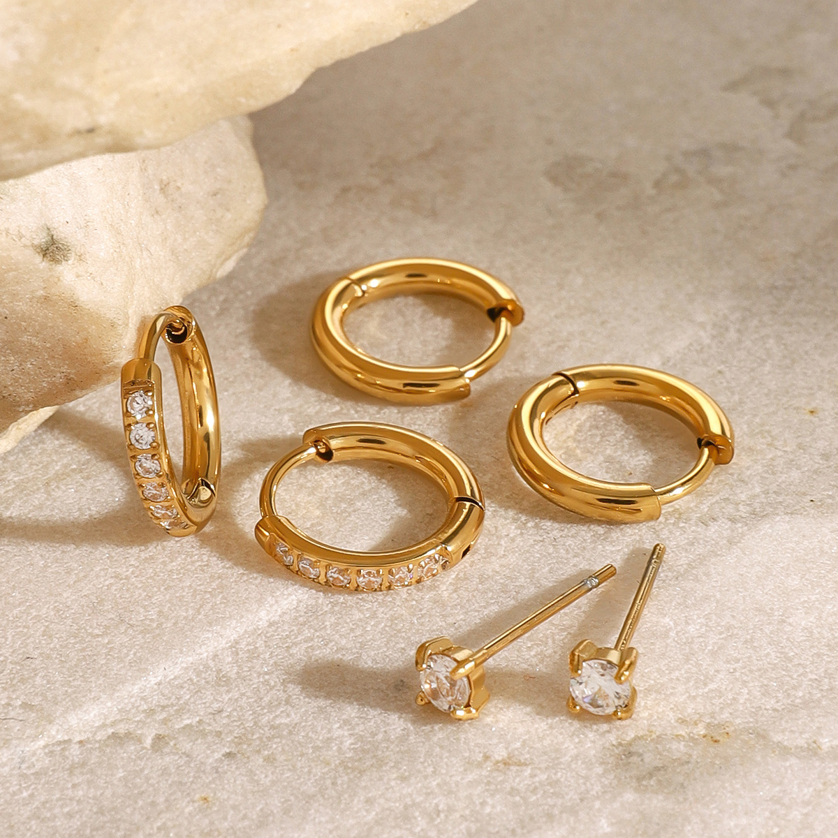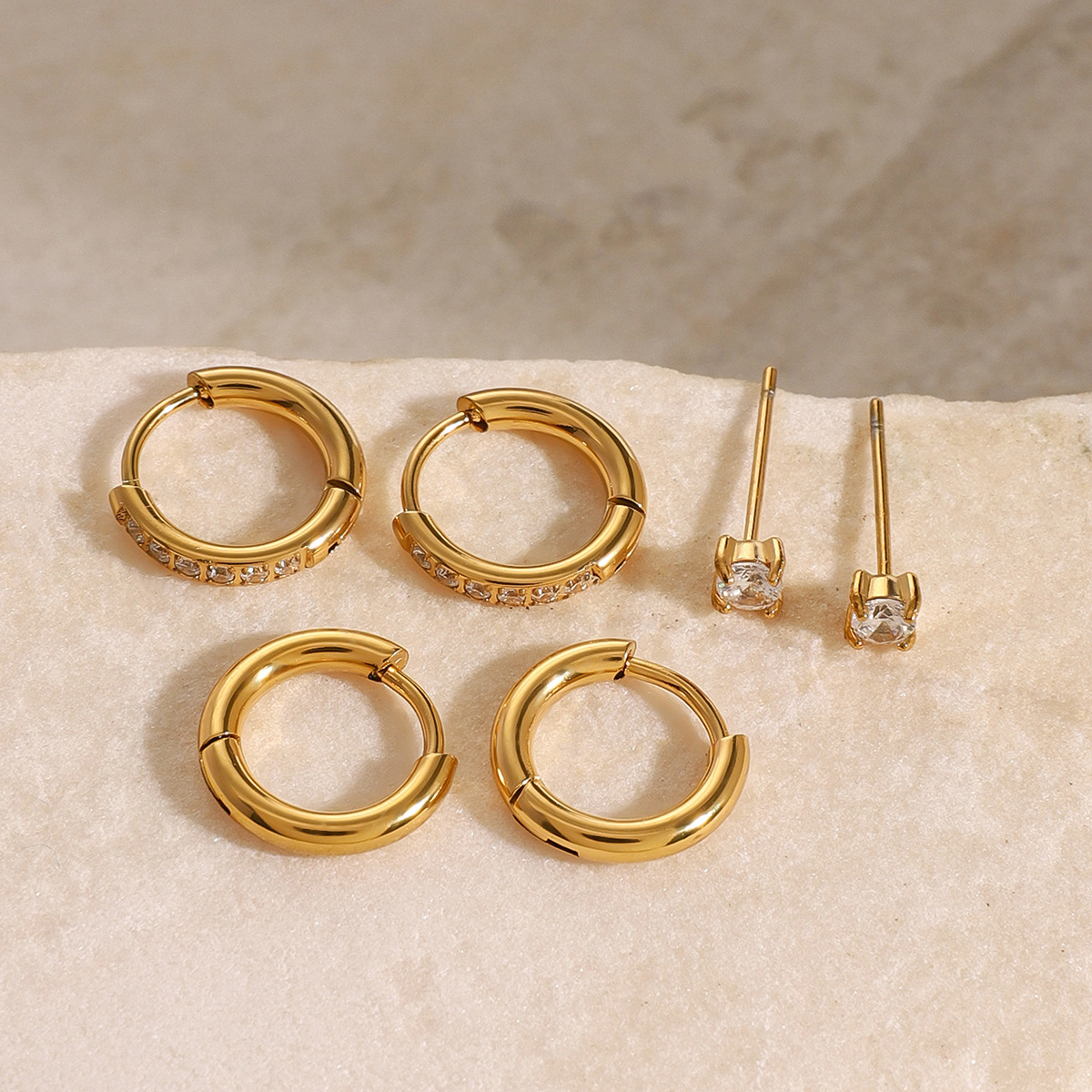 Mens acier inoxydable Hoop boucles d'oreilles, acier inoxydable boucle d'oreille anneau, beignet, pour homme & poudre d'étoile, doré Vendu par paire