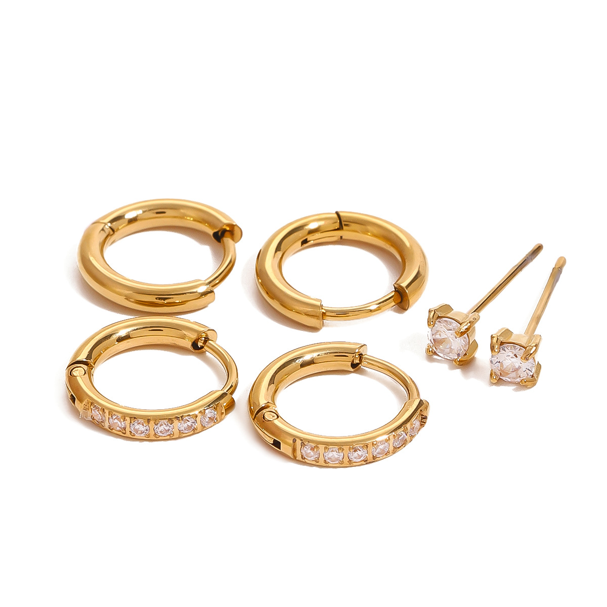Mens acier inoxydable Hoop boucles d'oreilles, Acier inoxydable 304, Placage de couleur d'or, pour femme & avec strass, Vendu par fixé
