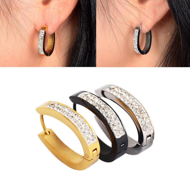 Mens acier inoxydable Hoop boucles d'oreilles, Acier inoxydable 304, Polis à la main, bijoux de mode & pour femme & avec strass, plus de couleurs à choisir, Vendu par PC