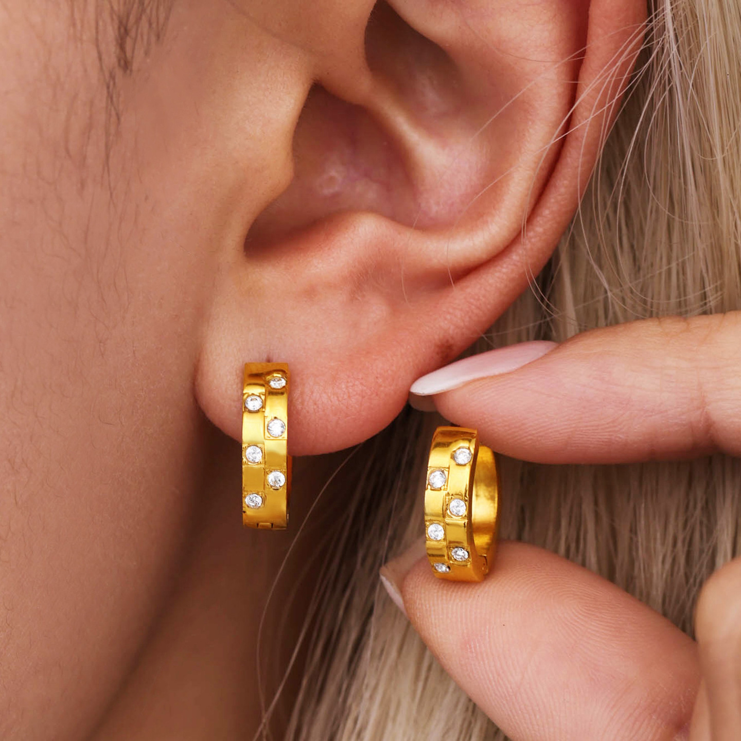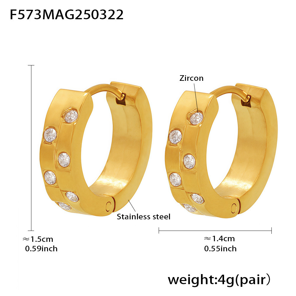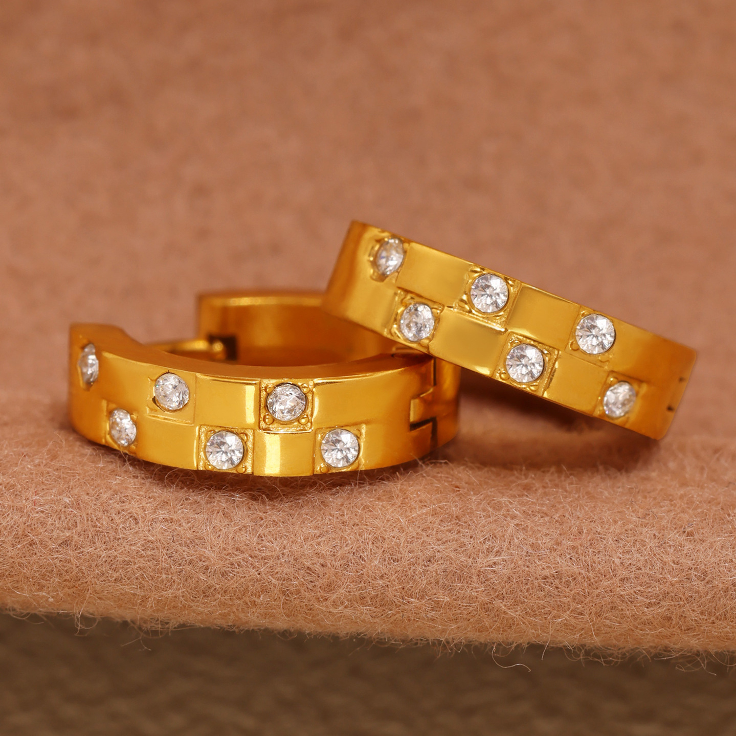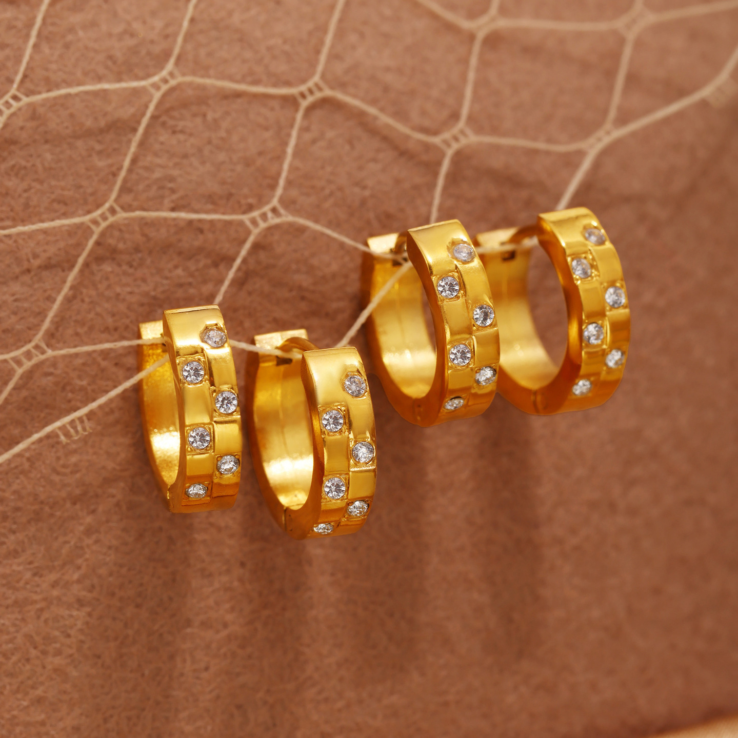 Mens acier inoxydable Hoop boucles d'oreilles, Acier inoxydable 304, avec zircon cubique, Plaqué d'or 18K, bijoux de mode & pour femme, Vendu par paire
