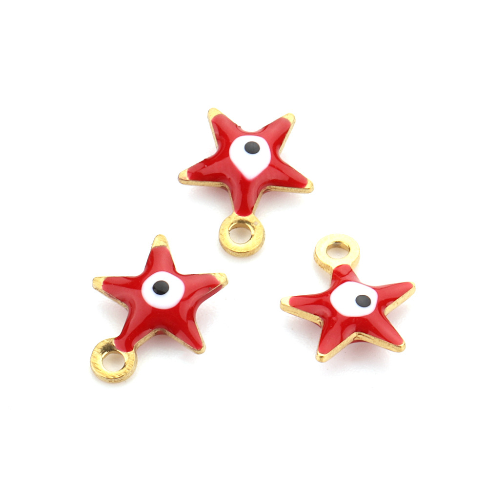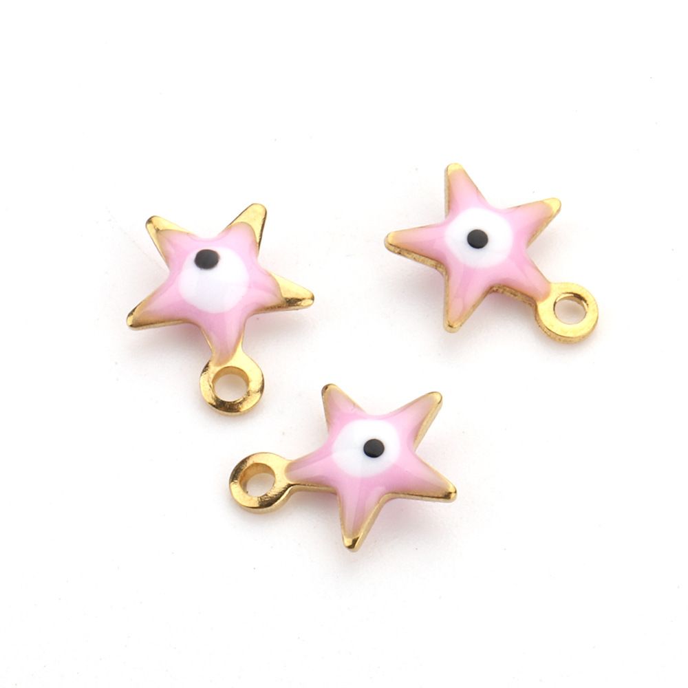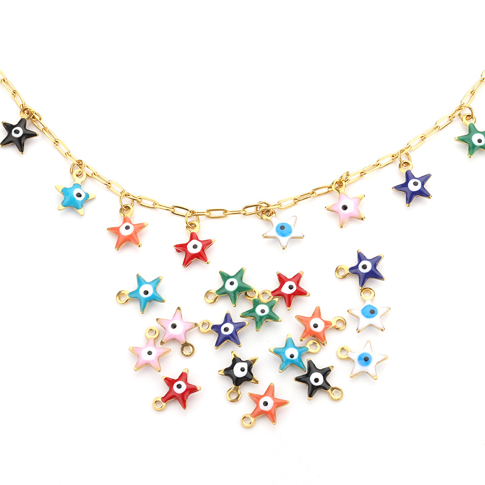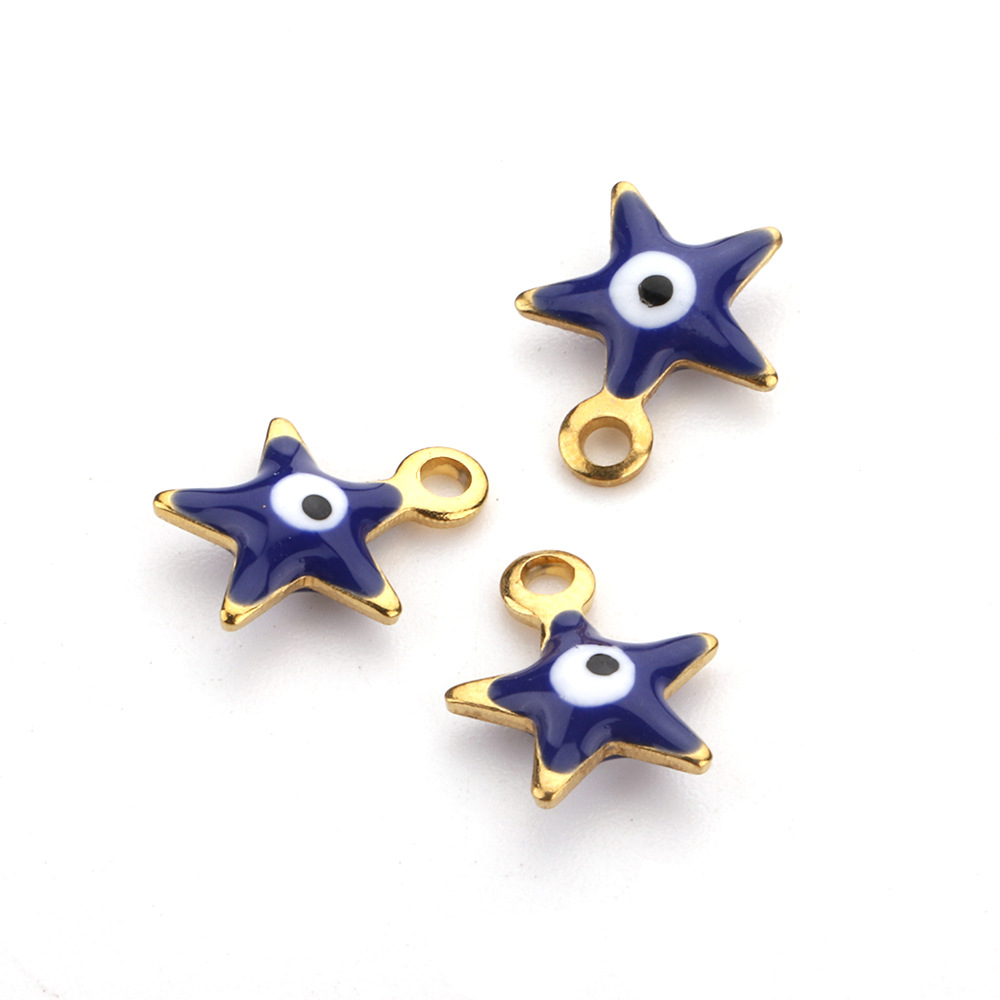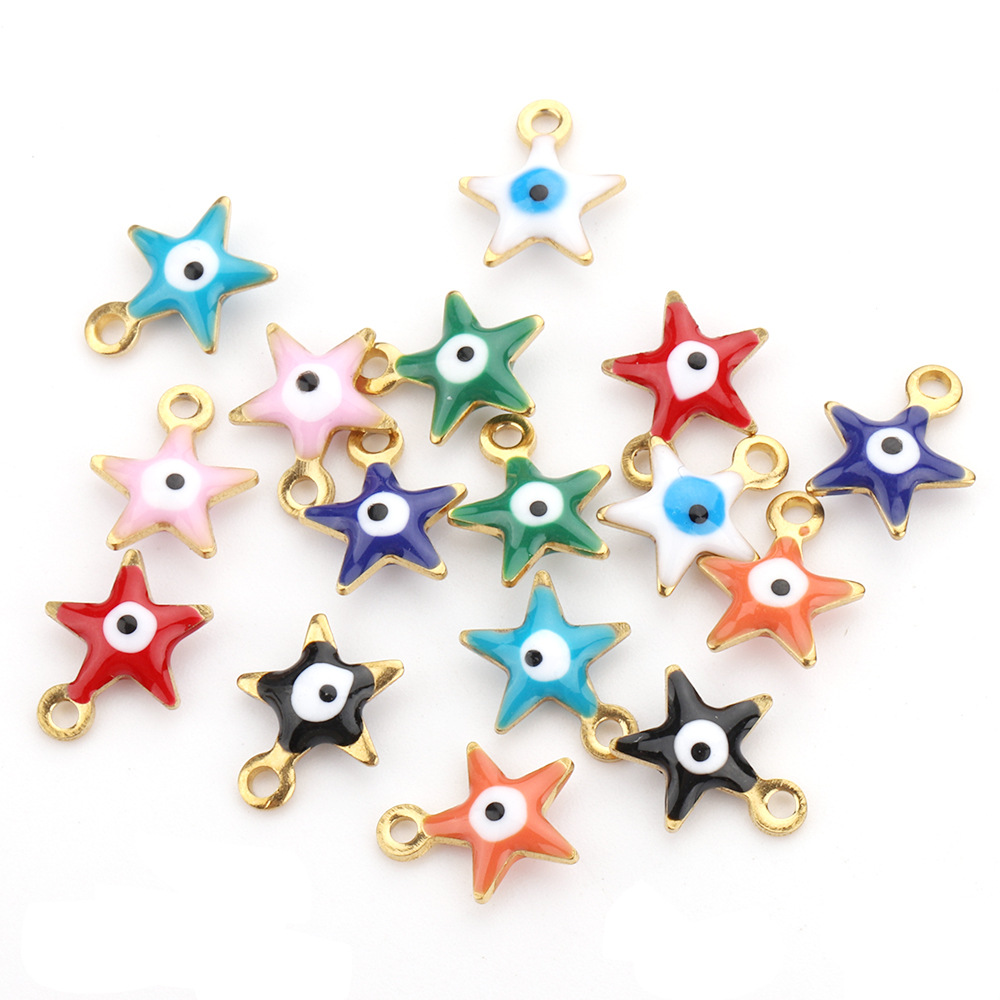 Mode Evil Eye Pendentif, Acier inoxydable 304, étoile, Placage, DIY & motif de mauvais œil & émail, plus de couleurs à choisir, 8mm, 100PC/sac, Vendu par sac