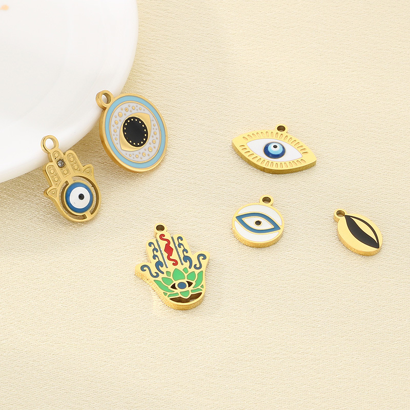 Mode Evil Eye Pendentif, Acier inoxydable 304, avec résine, Placage de couleur d'or, DIY & émail, doré, 10PC/sac, Vendu par sac