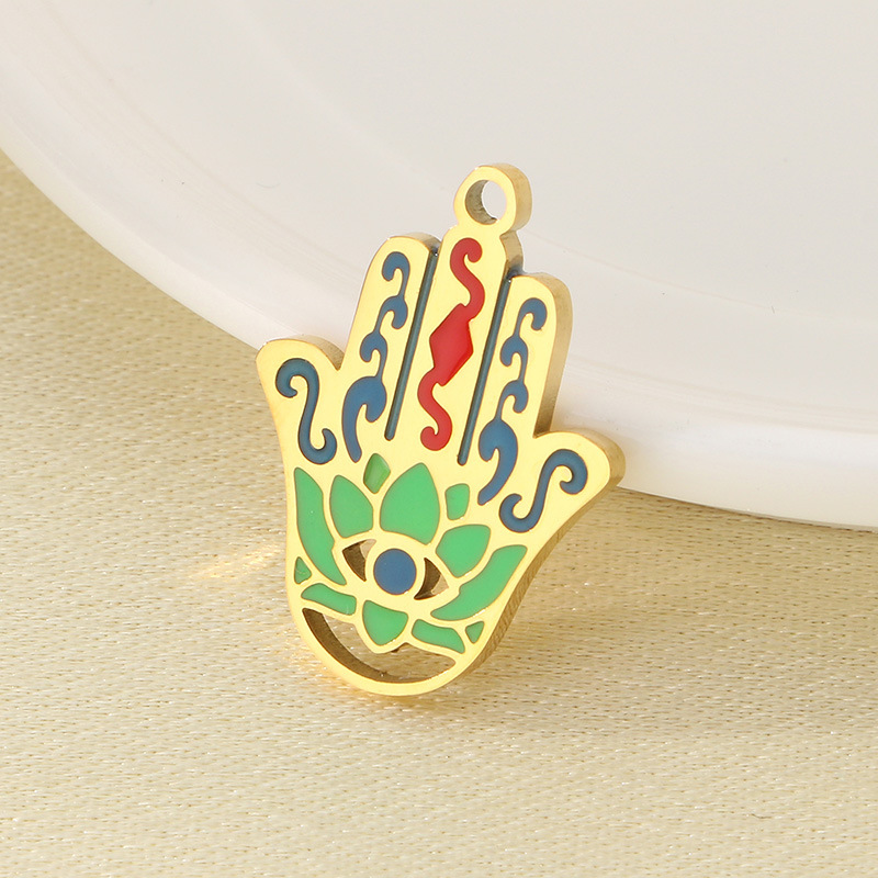 Mode Evil Eye Pendentif, laiton, avec résine, Main de Fatma, Placage, motif de mauvais œil & pavé de micro zircon & creux, plus de couleurs à choisir Environ 1.5mm, Vendu par PC