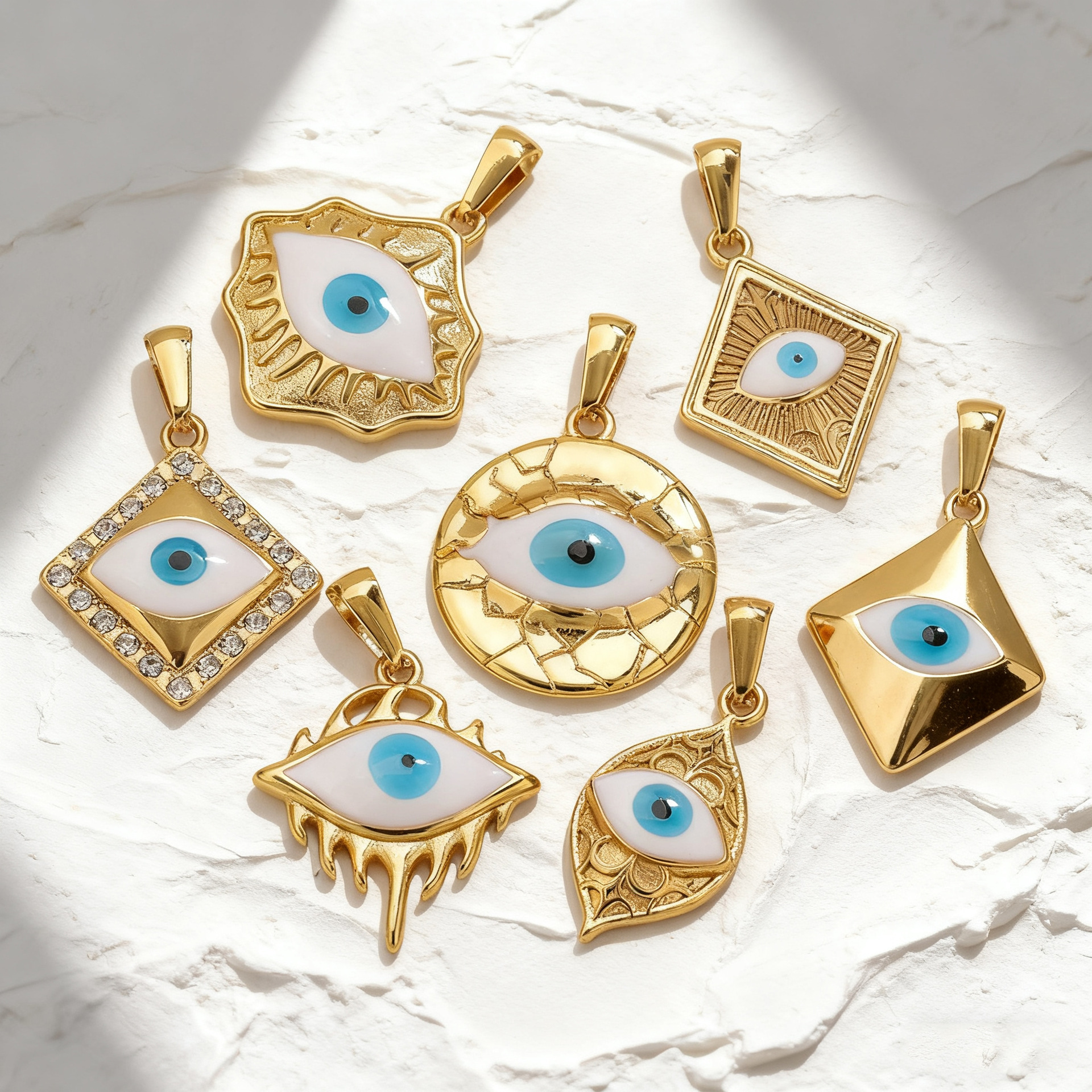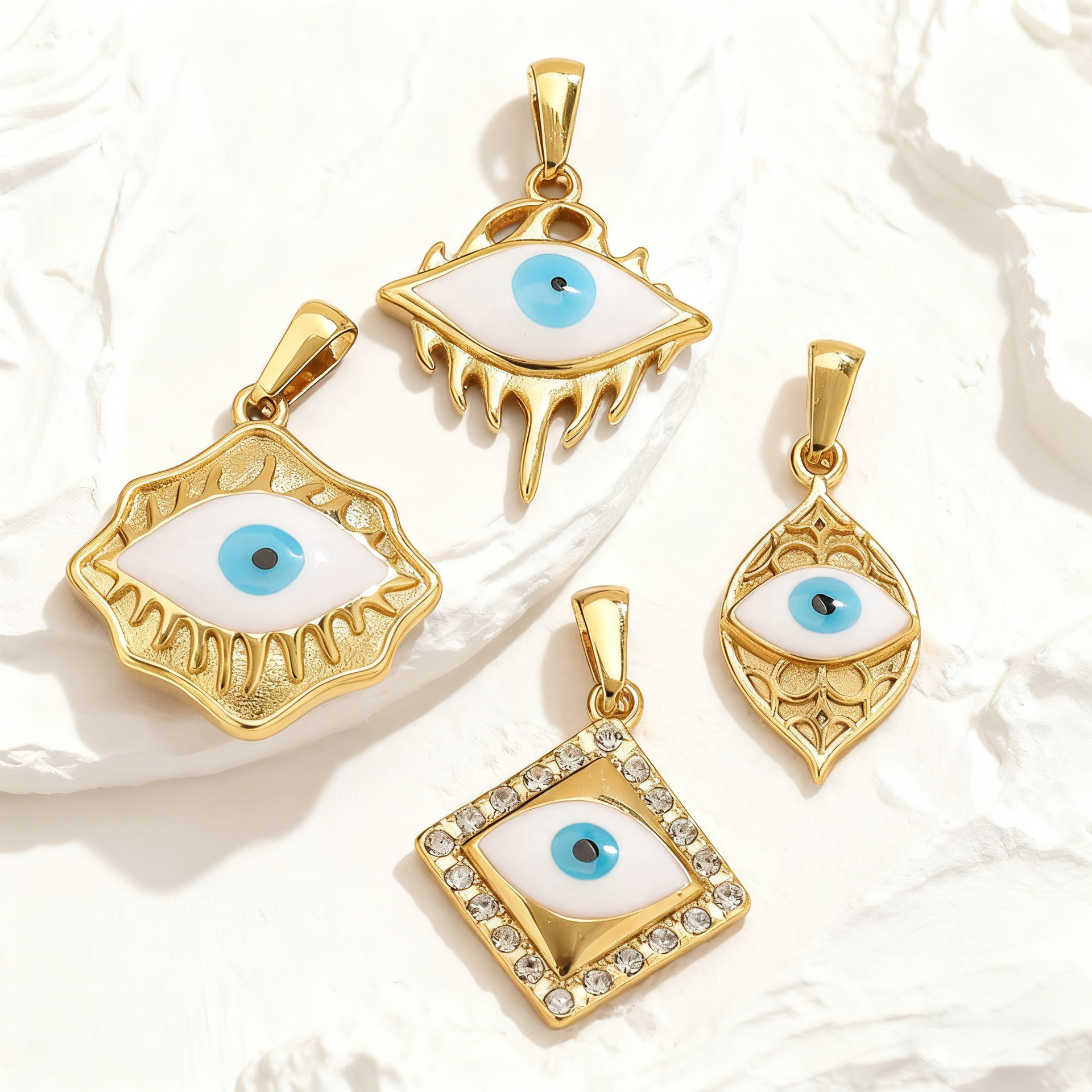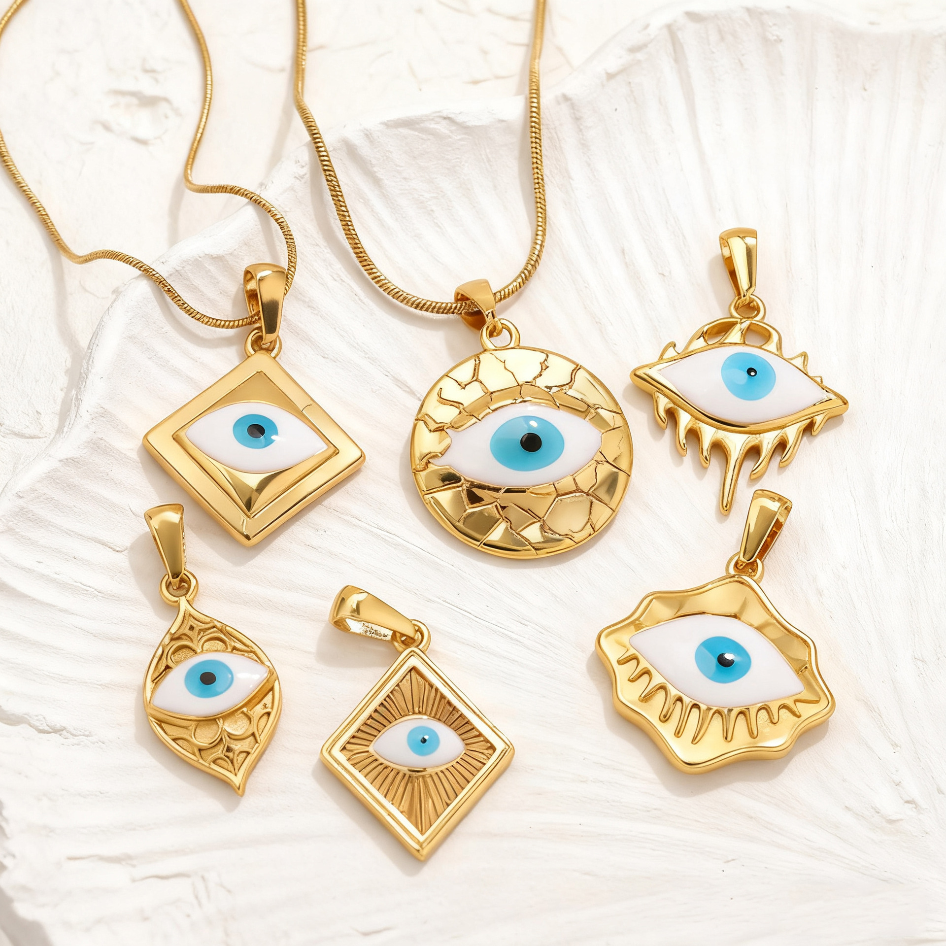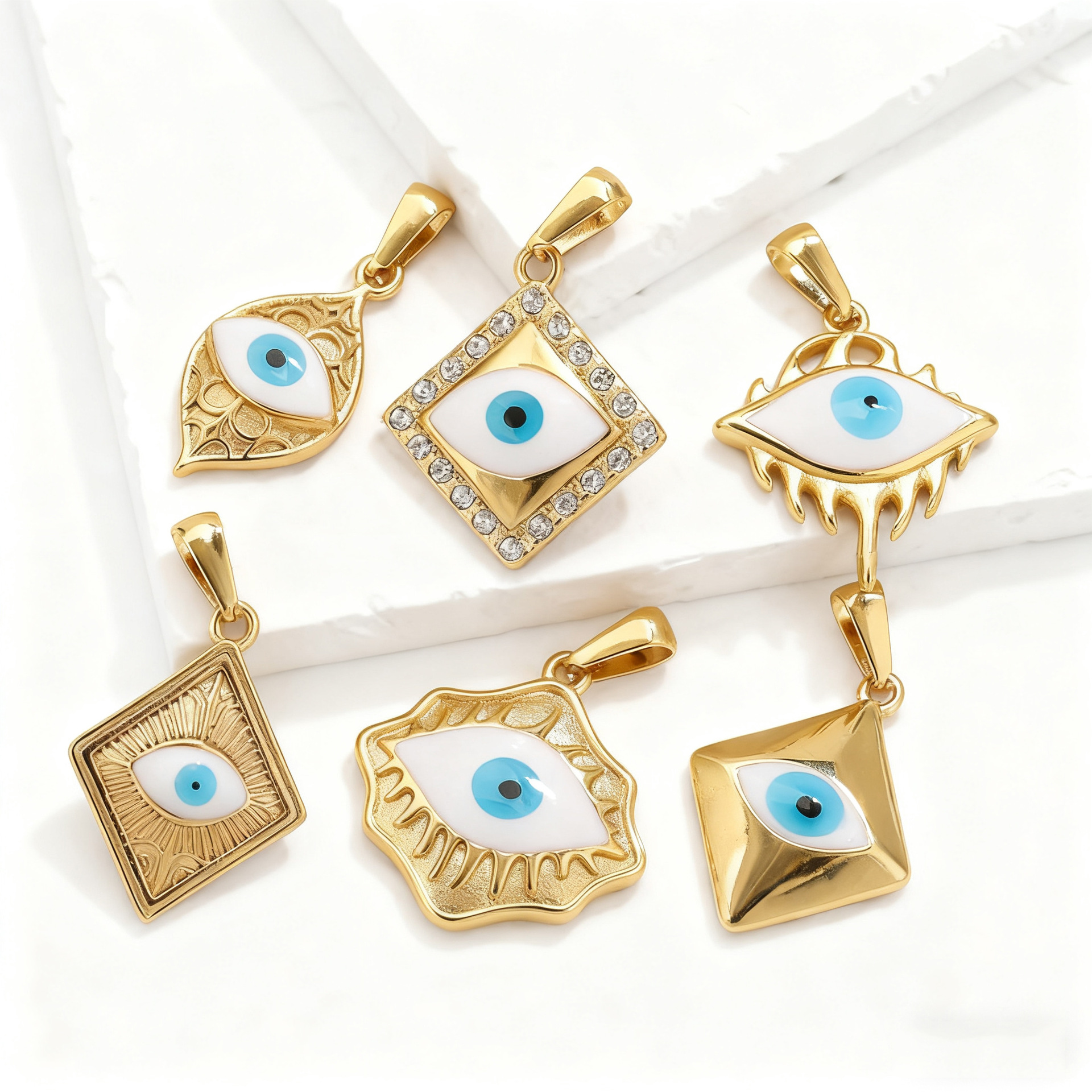 Mode Evil Eye Pendentif, Acier inoxydable 304, Mauvais œil, Placage de couleur d'or, DIY & styles différents pour le choix & émail, Vendu par PC