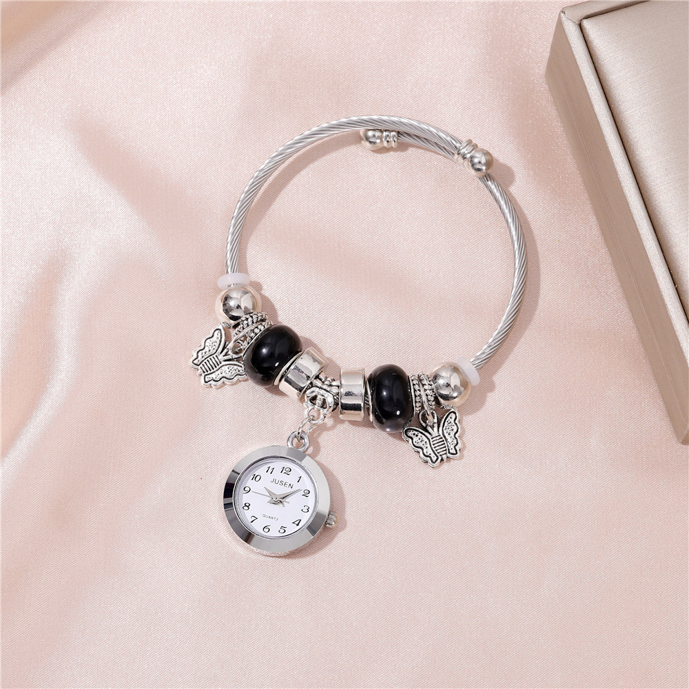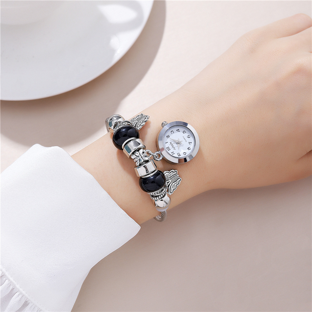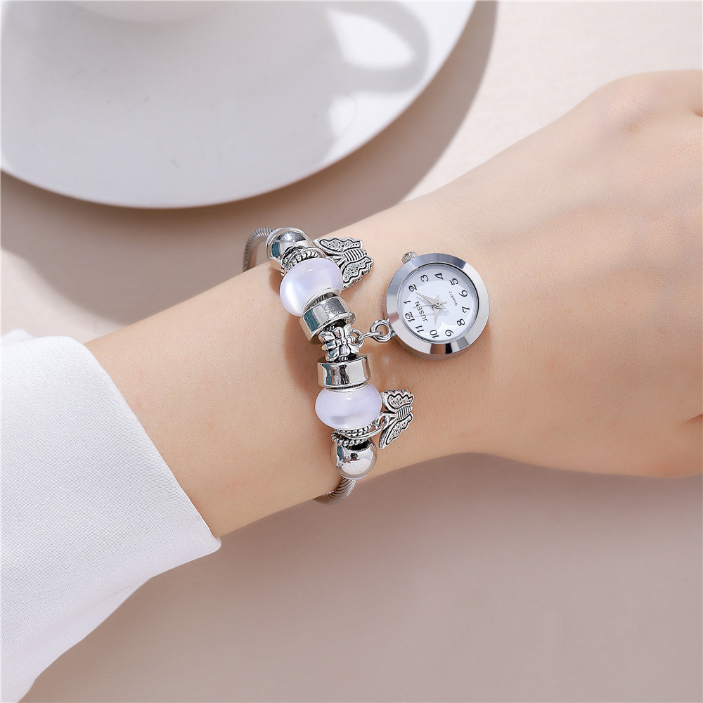 Mode Montre-bracelet, corde de laine, avec Plastique ABS perle & cadran en alliage de zinc & verre, mouvement chinoise, Placage de couleur d'or, pour femme & avec strass, plus de couleurs à choisir Environ 8.6 pouce, Vendu par brin