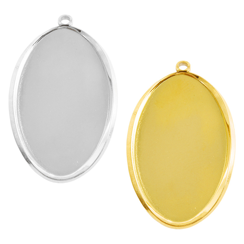 Monture de pendentif en acier inoxydable, ovale plat, couleur originale Environ 2.5mm, Diamètre inté Environ Vendu par PC