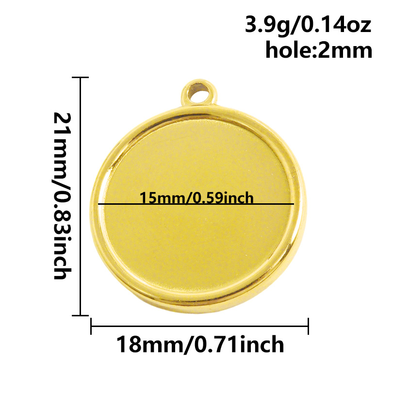 Monture de pendentif en acier inoxydable, Acier inoxydable 304, Plat rond, Placage, plus de couleurs à choisir Environ Diamètre inté Environ 16mm, Vendu par PC