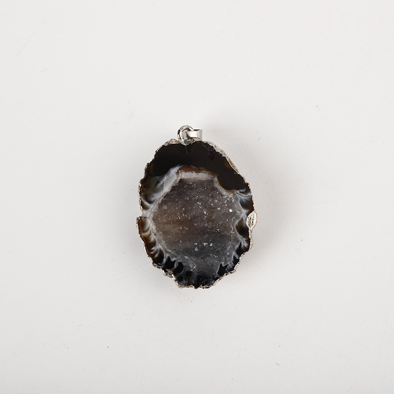 Natural Agate Pendentif Druzy, agate quartz de glace, avec laiton, Placage de couleur argentée, mélangé, 21-33x46-55x4-5mm Environ Vendu par PC