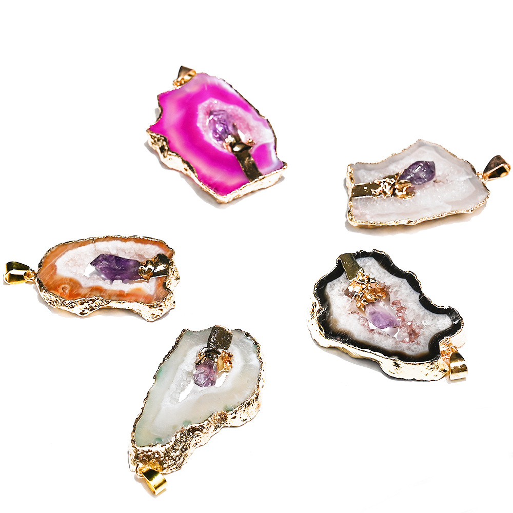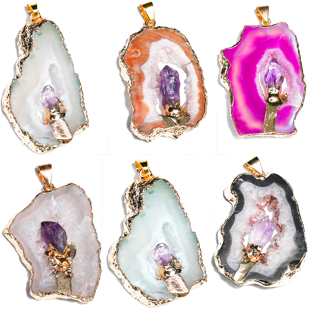 Natural Agate Pendentif Druzy, avec alliage de zinc, Placage de couleur d'or, DIY, plus de couleurs à choisir, 30x50mm, Vendu par PC