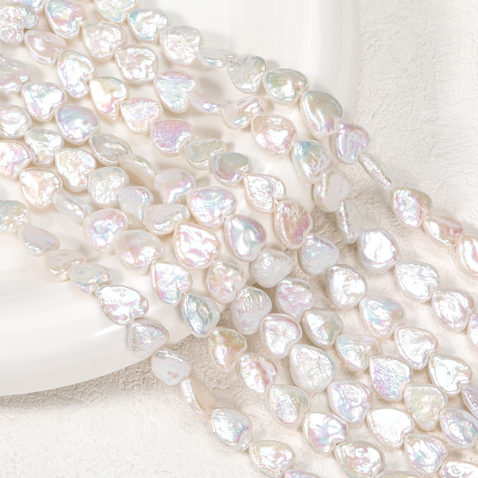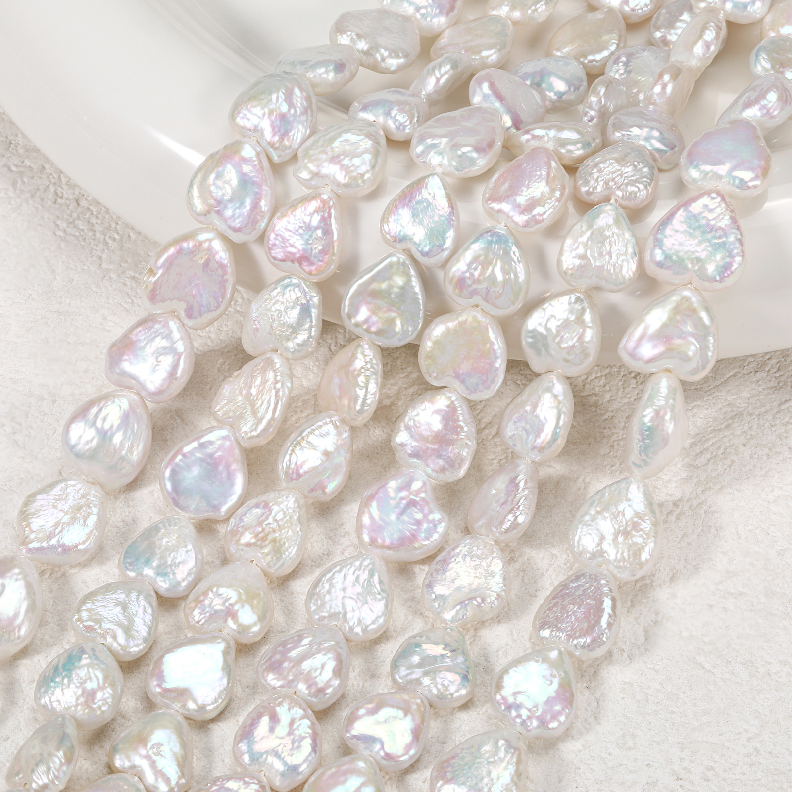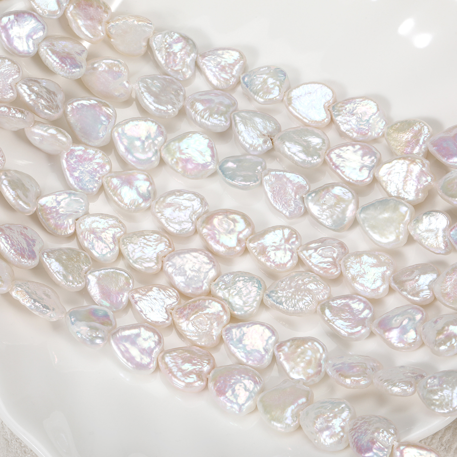 Naturel d'eau douce perles, perle d'eau douce cultivée, coeur, blanc, 12x13mm, Vendu par brin