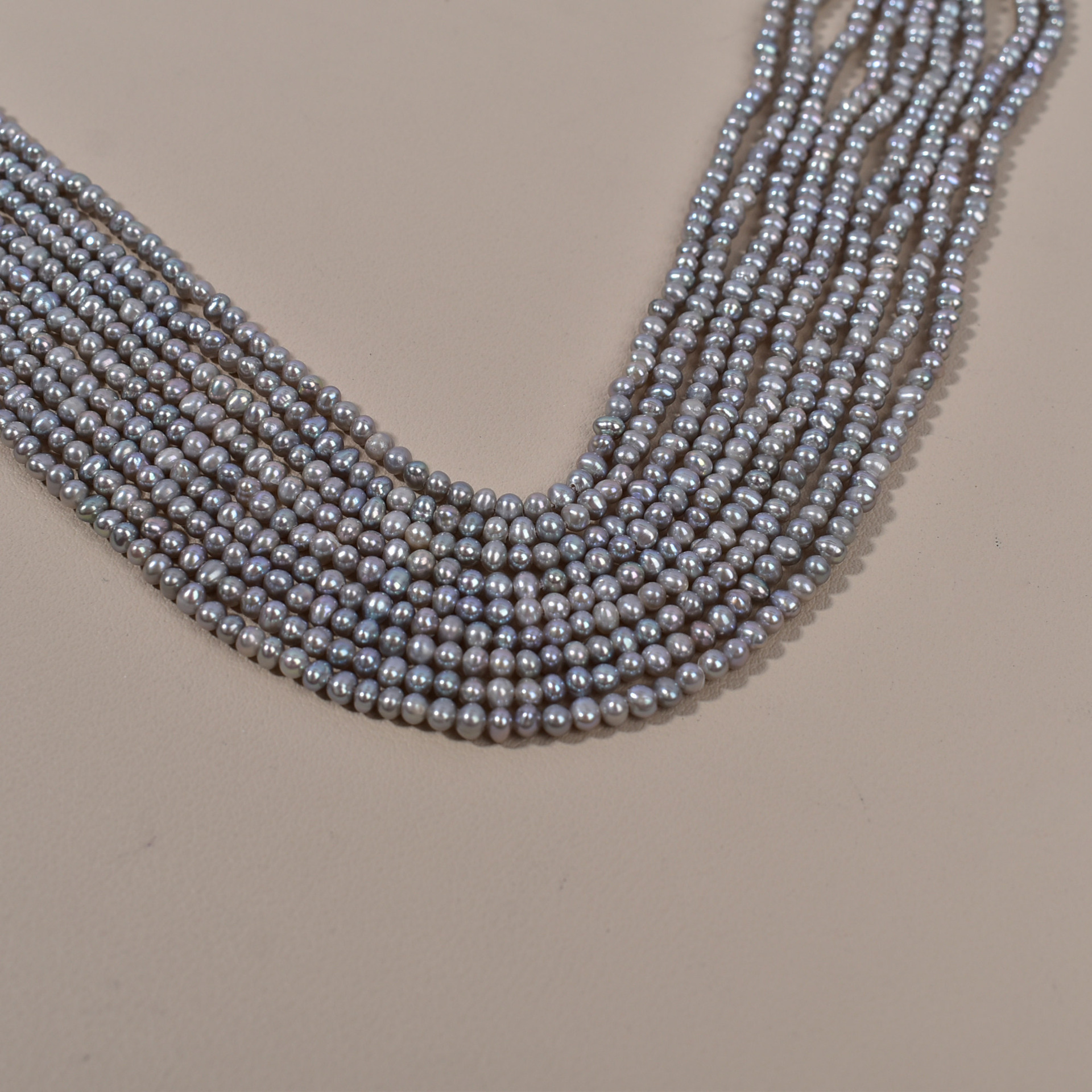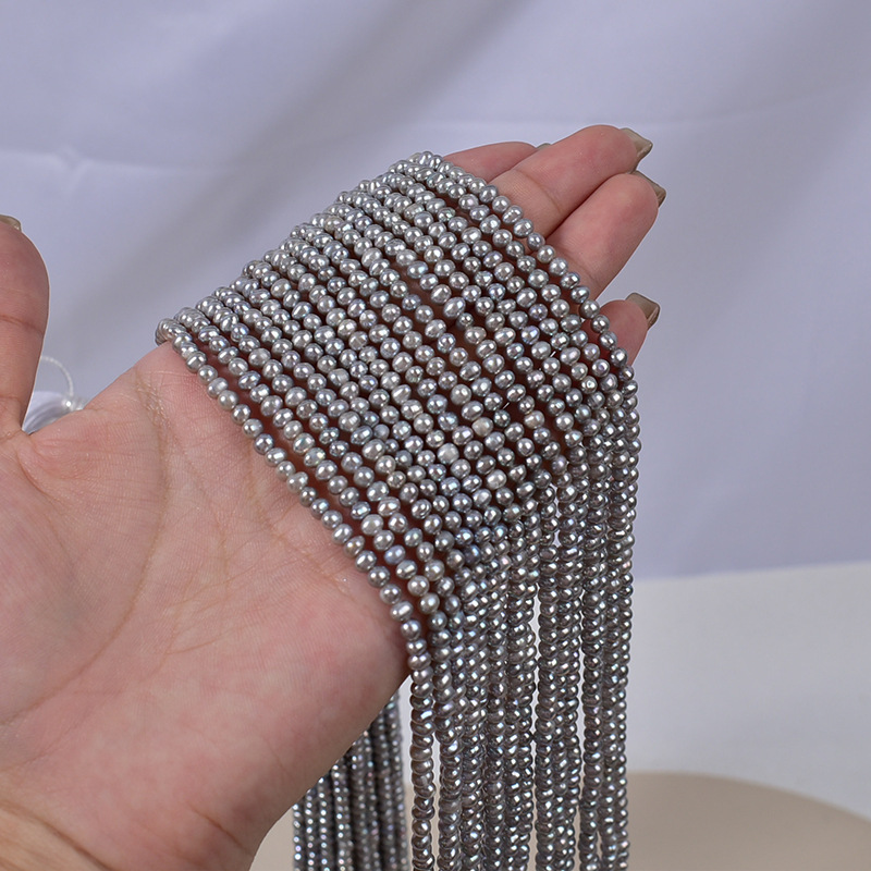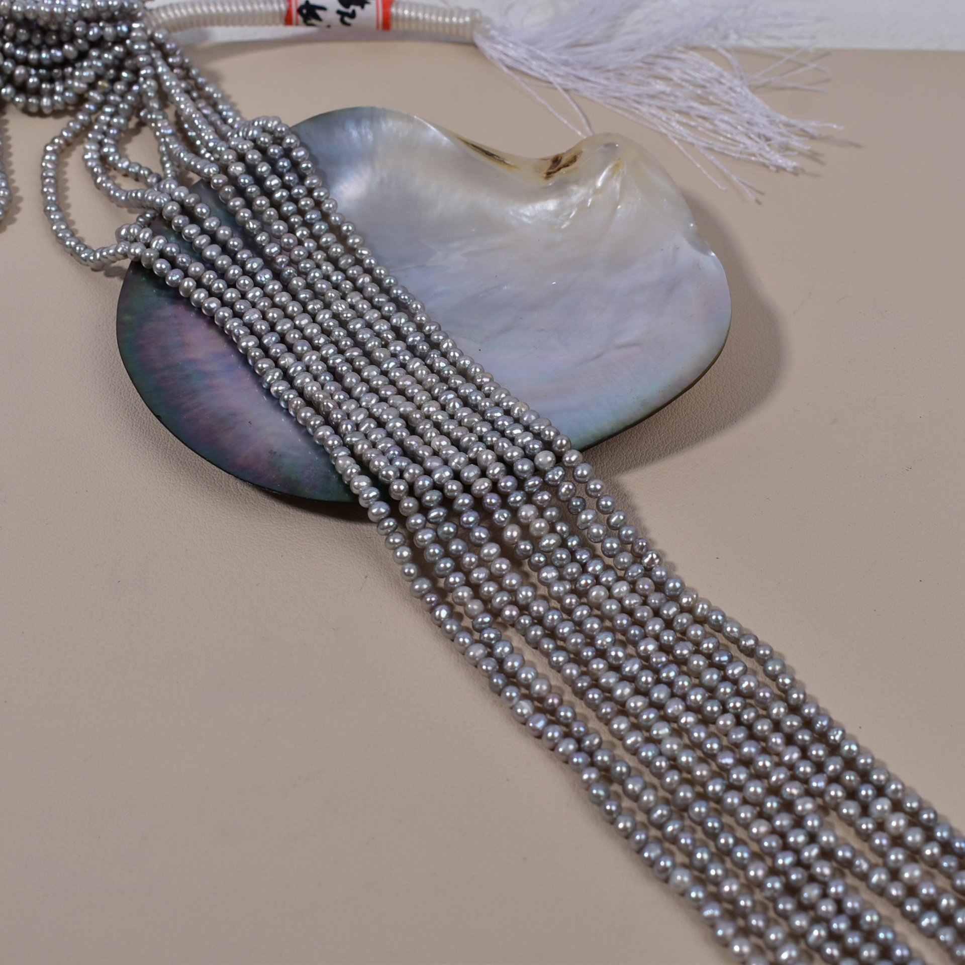 Naturel d'eau douce perles, perle d'eau douce cultivée, Légèrement rond, DIY, gris, 3x4mm, Vendu par brin
