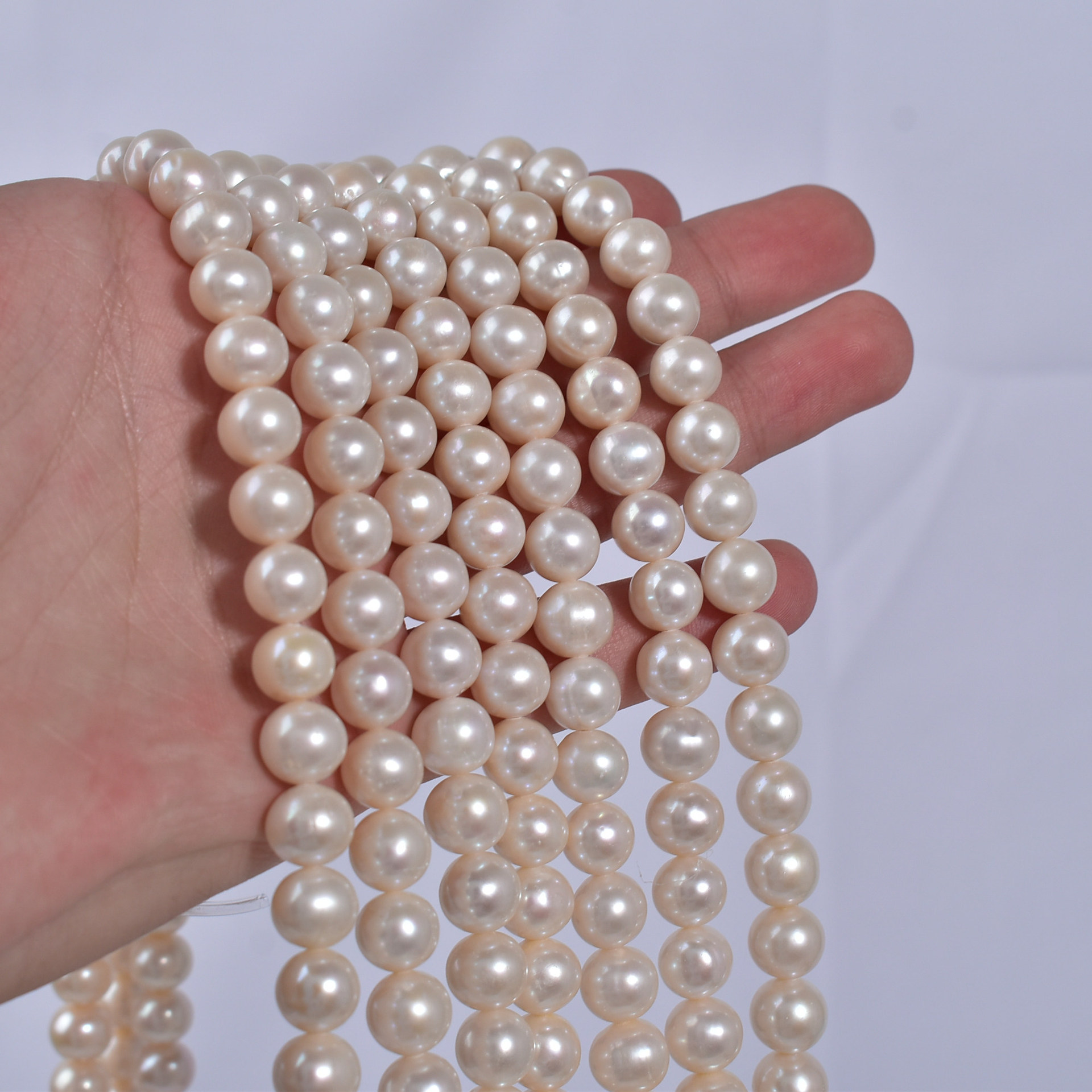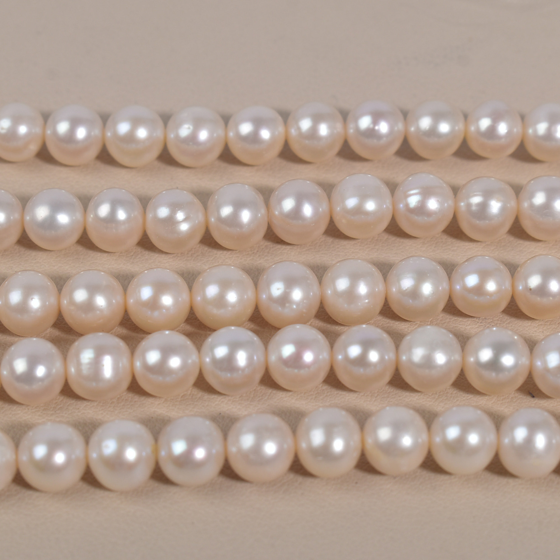 Naturel d'eau douce perles, perle d'eau douce cultivée, pomme de terre, blanc, 7-8mm Environ 0.8mm Vendu par sac