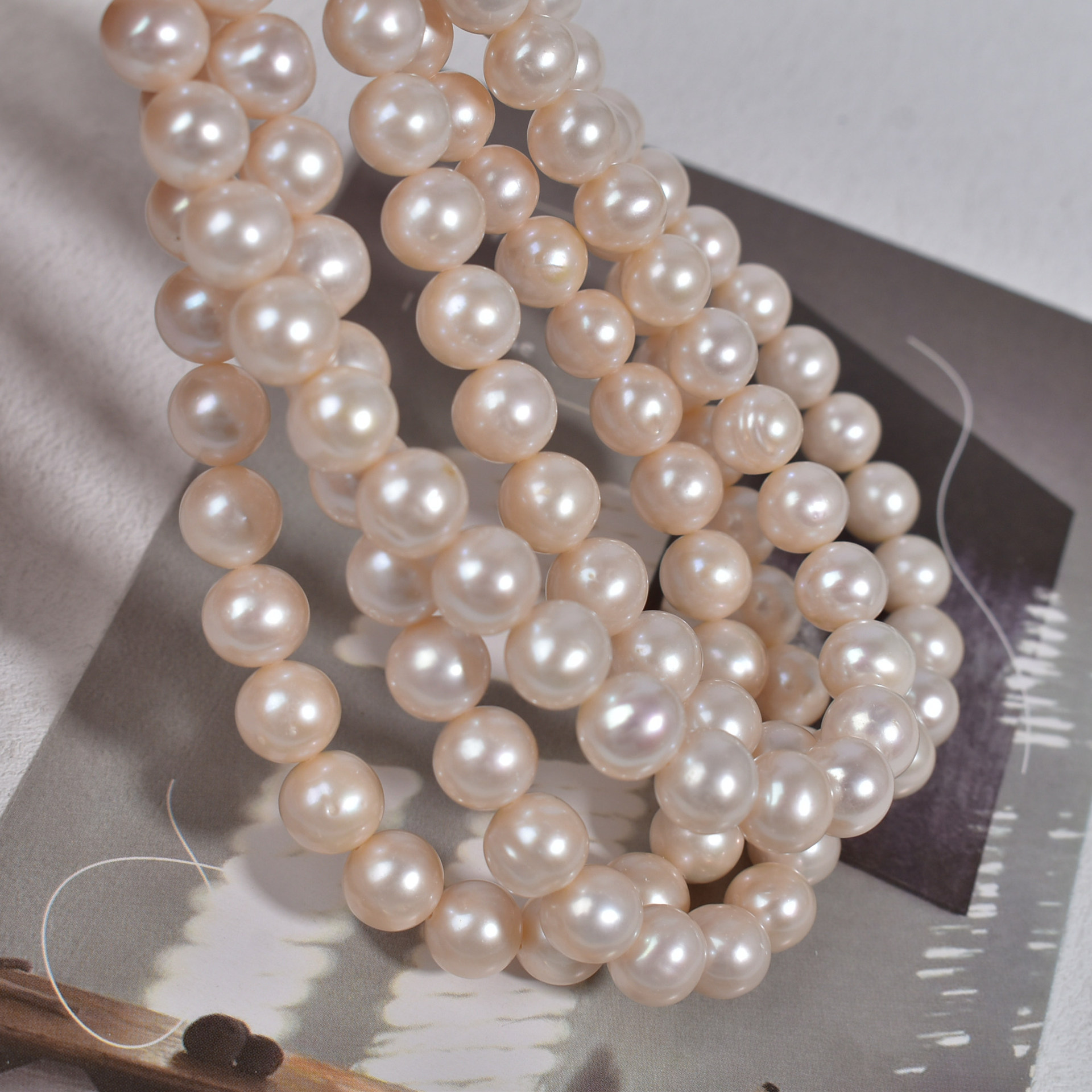 Naturel d'eau douce perles, perle d'eau douce cultivée, Légèrement rond, Placage de couleur d'or, DIY, rose, 9x10mm, Vendu par brin