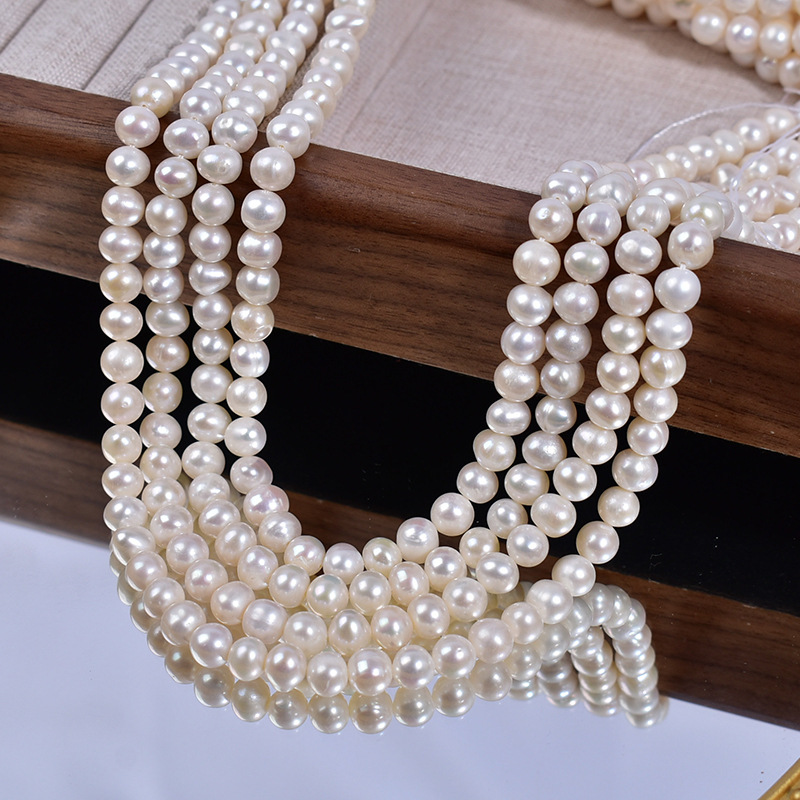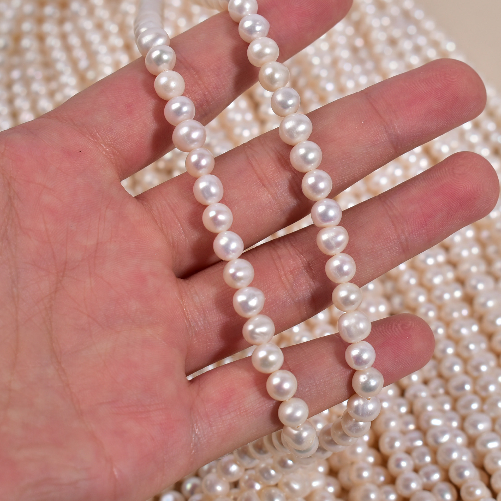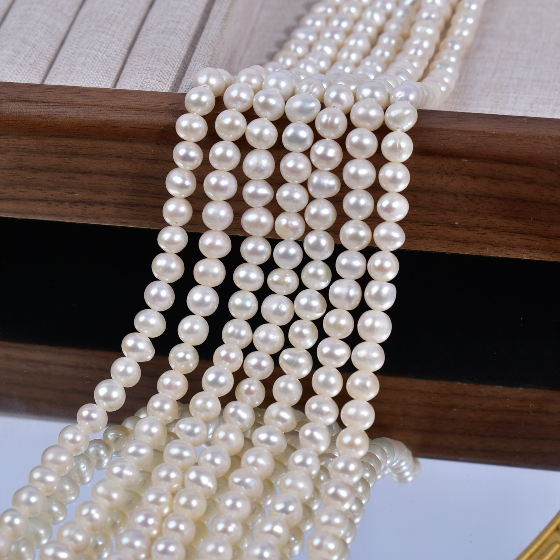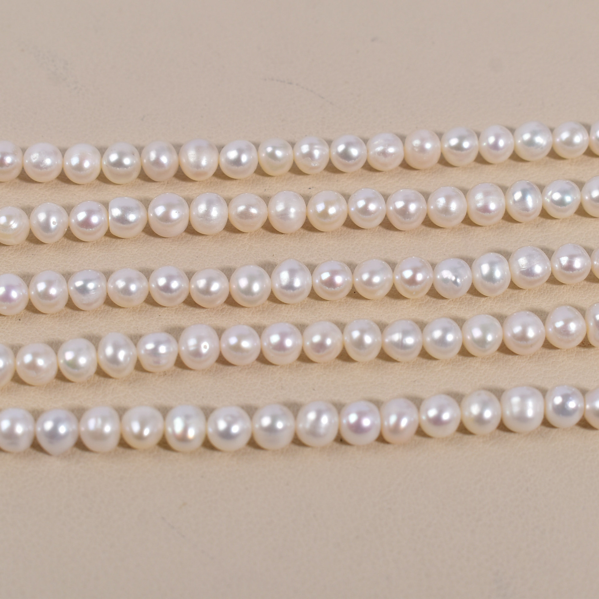 Naturel d'eau douce perles, perle d'eau douce cultivée, Légèrement rond, DIY, blanc, 5x6mm, Vendu par brin